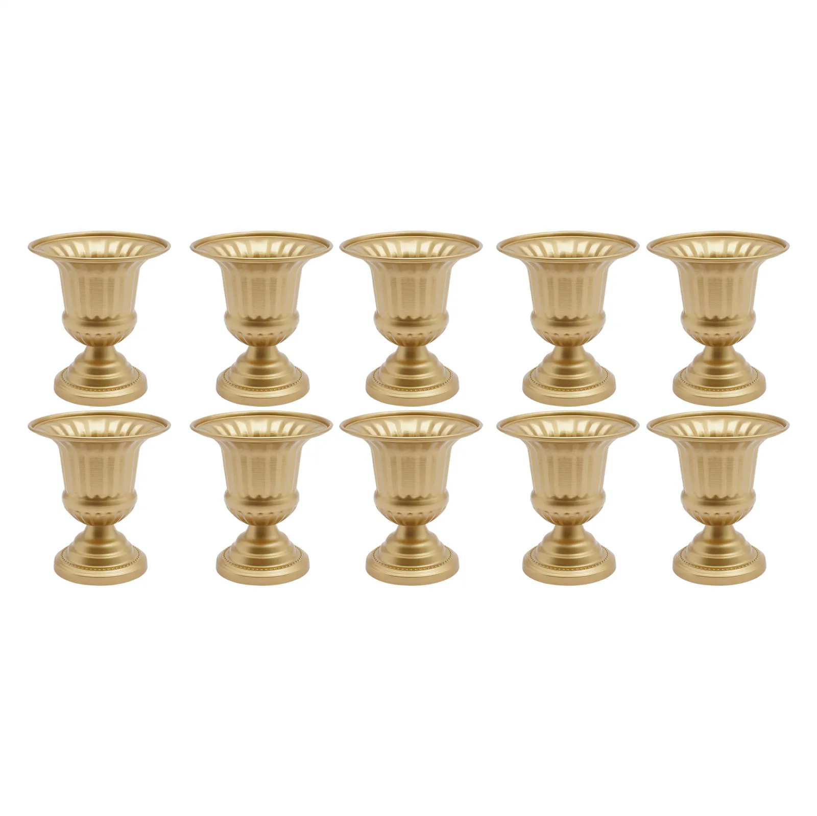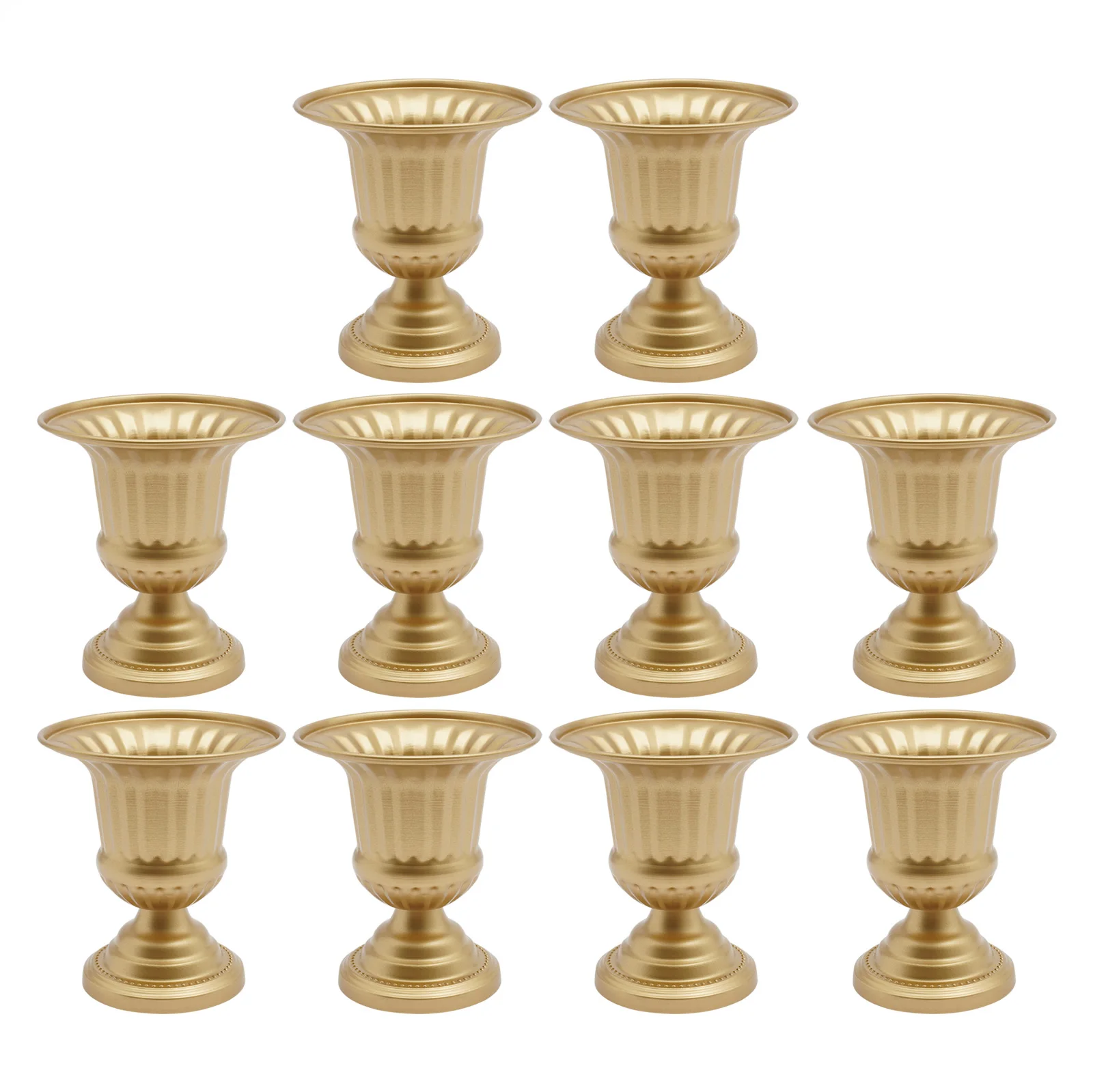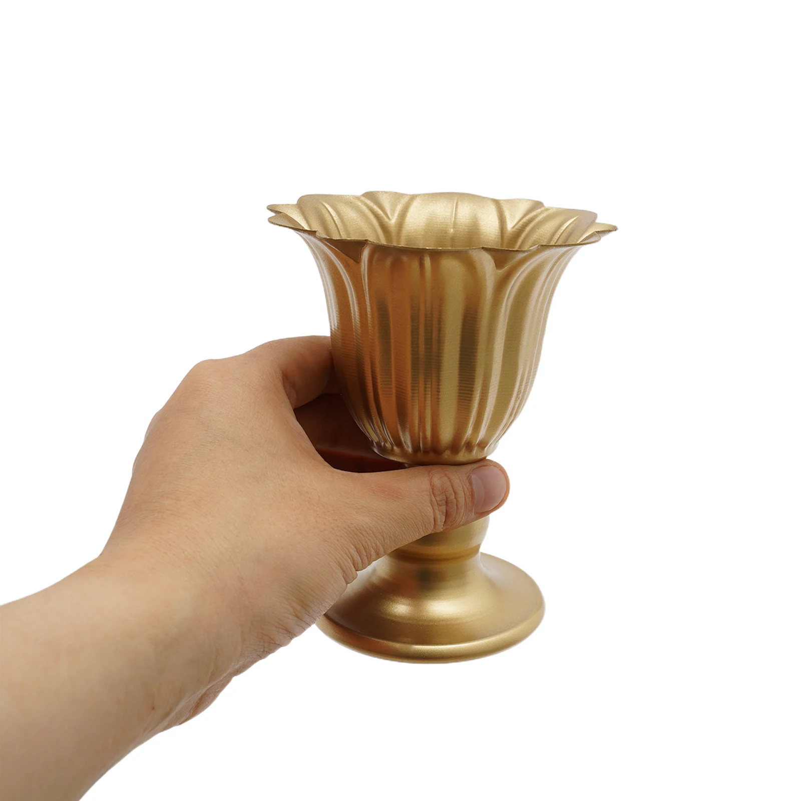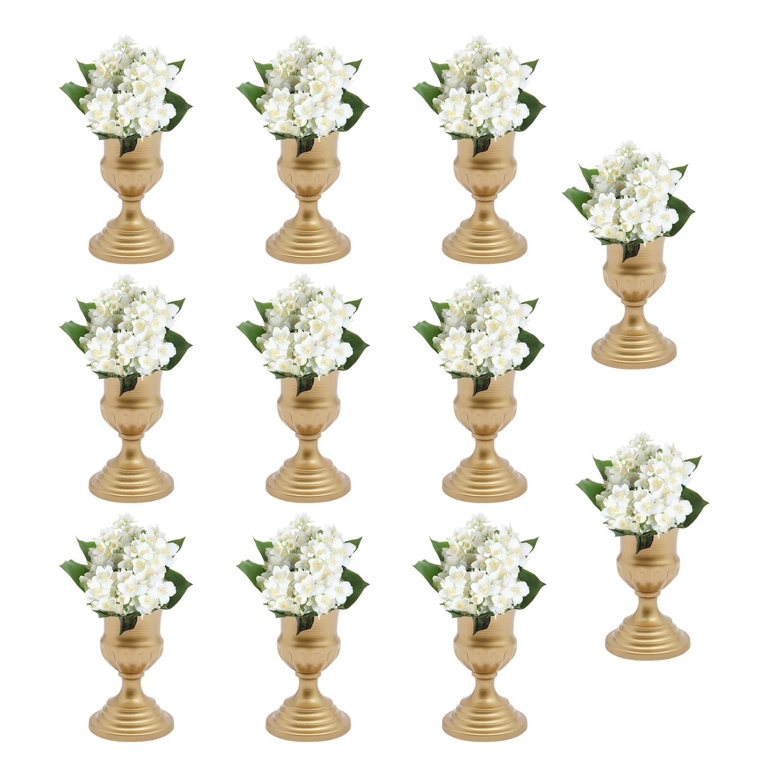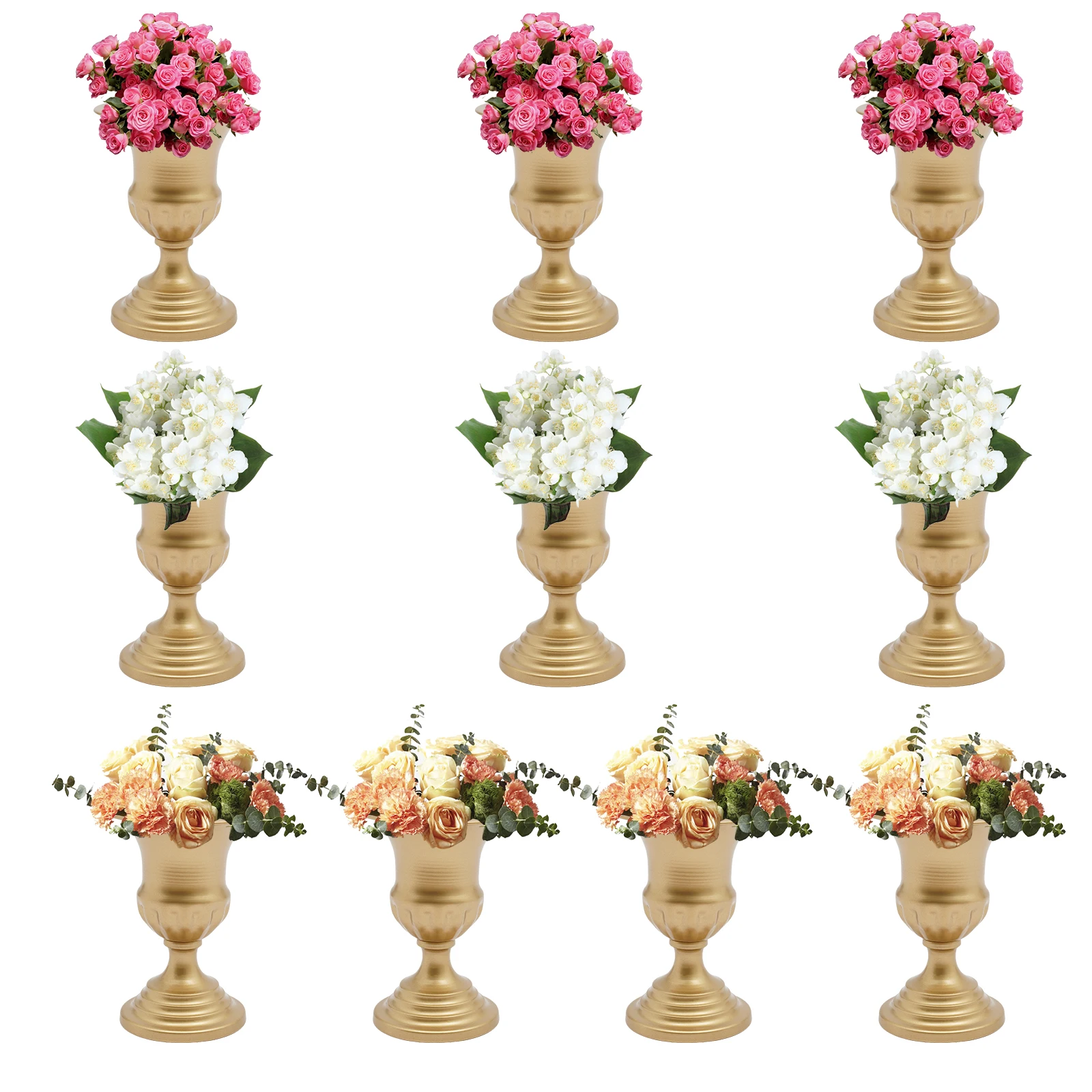 10Pcs 4.9"/6.69"/ 9.1" Bright Golden Flower Vases Metal Small Pedestal Trumpet Vase for Wedding Table Centerpieces Party Decor