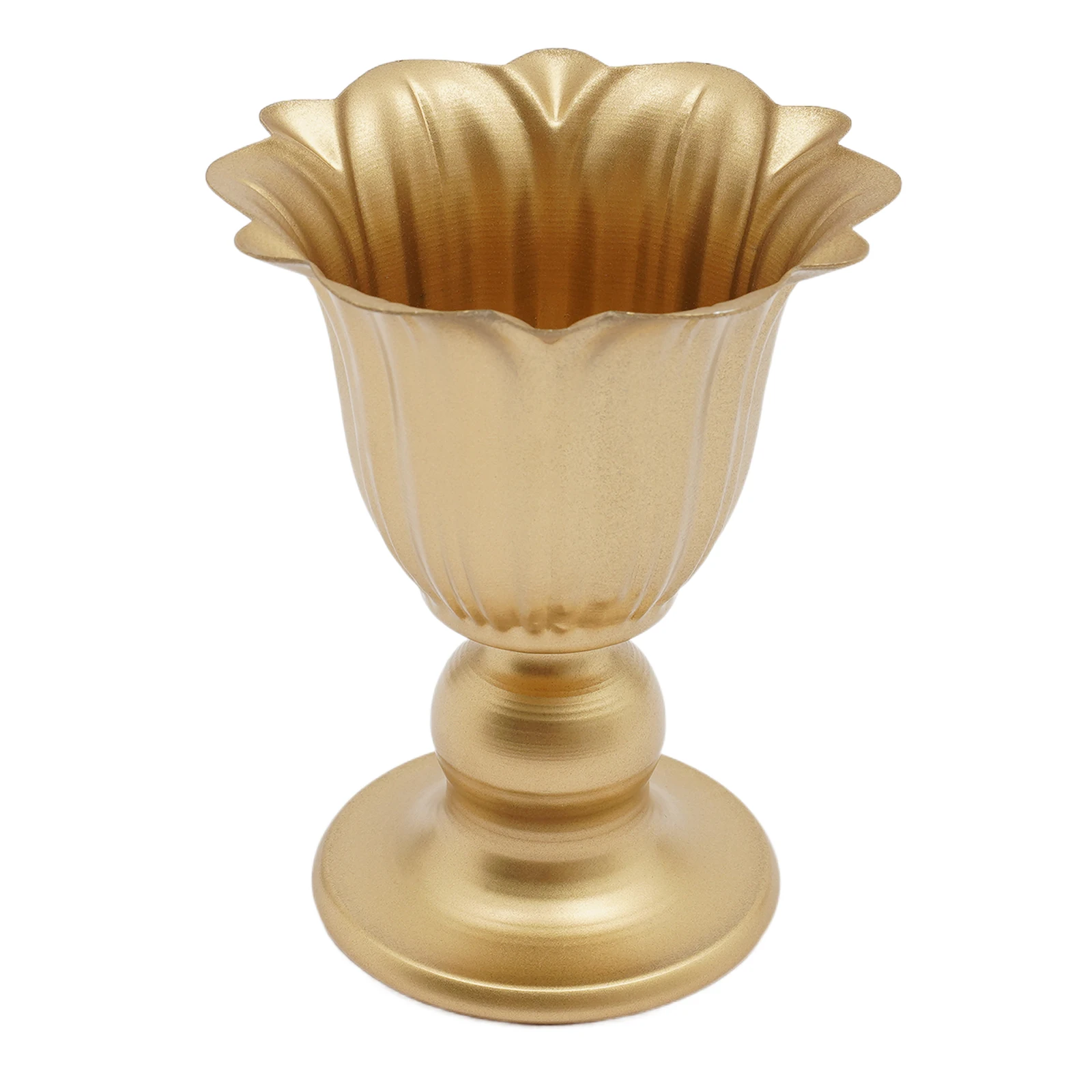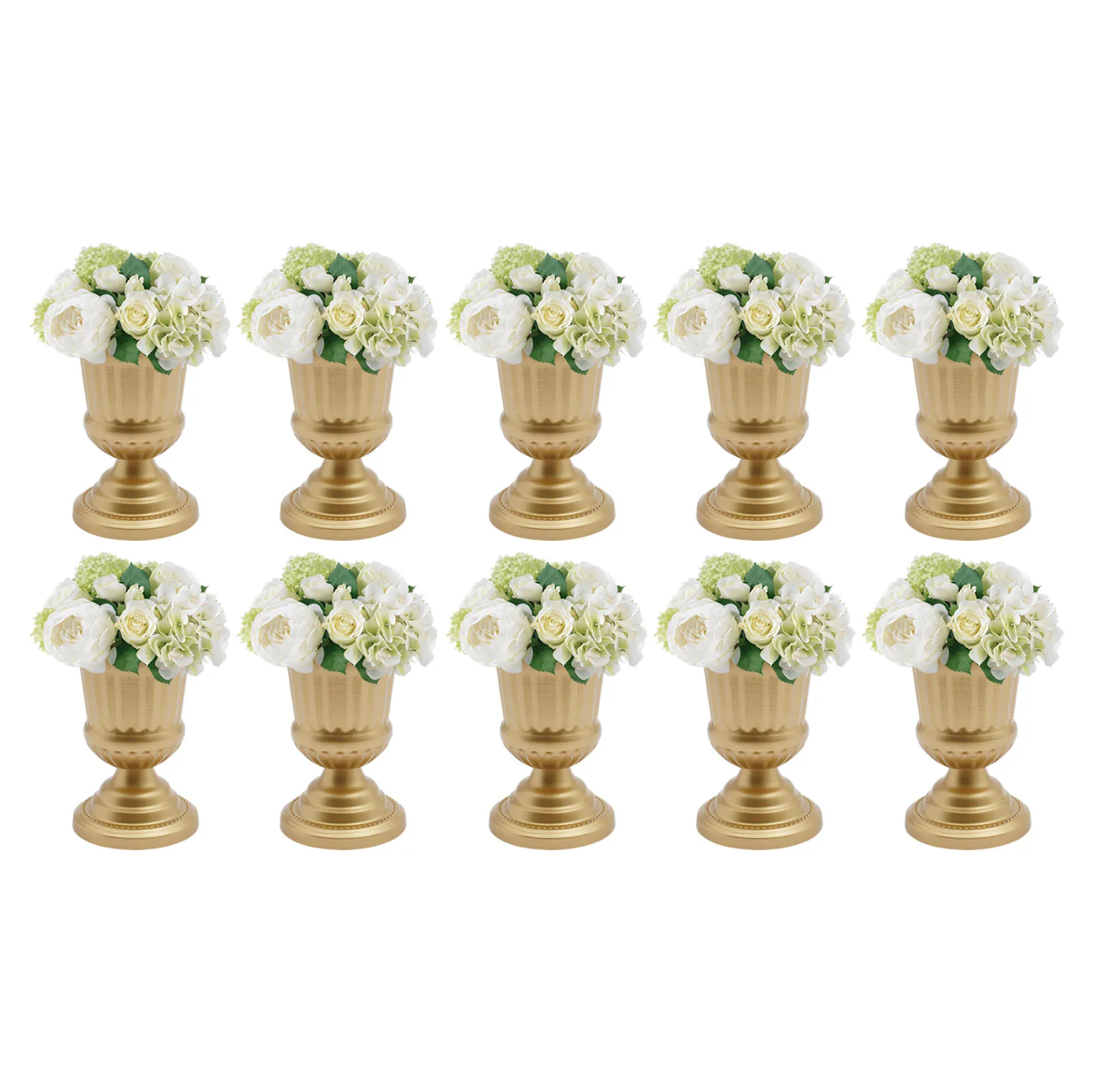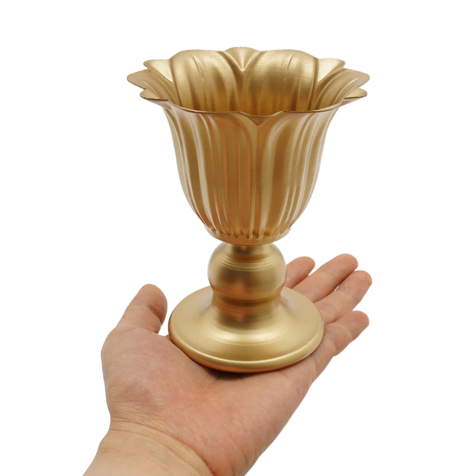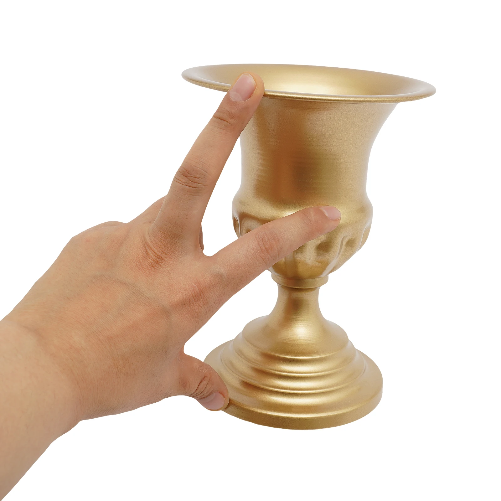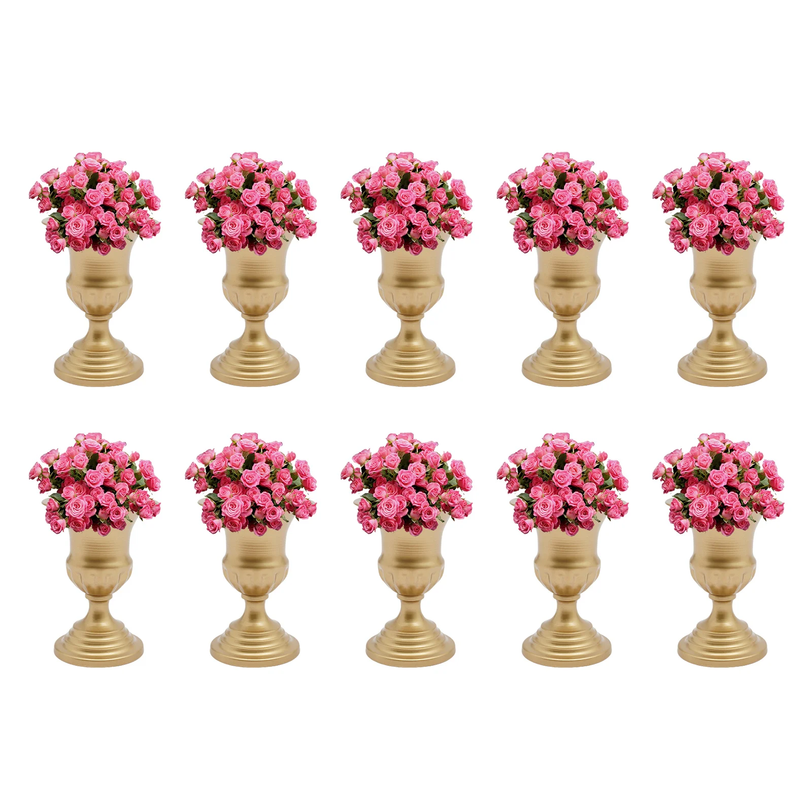10Pcs 4.9"/6.69"/ 9.1" Bright Golden Flower Vases Metal Small Pedestal Trumpet Vase for Wedding Table Centerpieces Party Decor