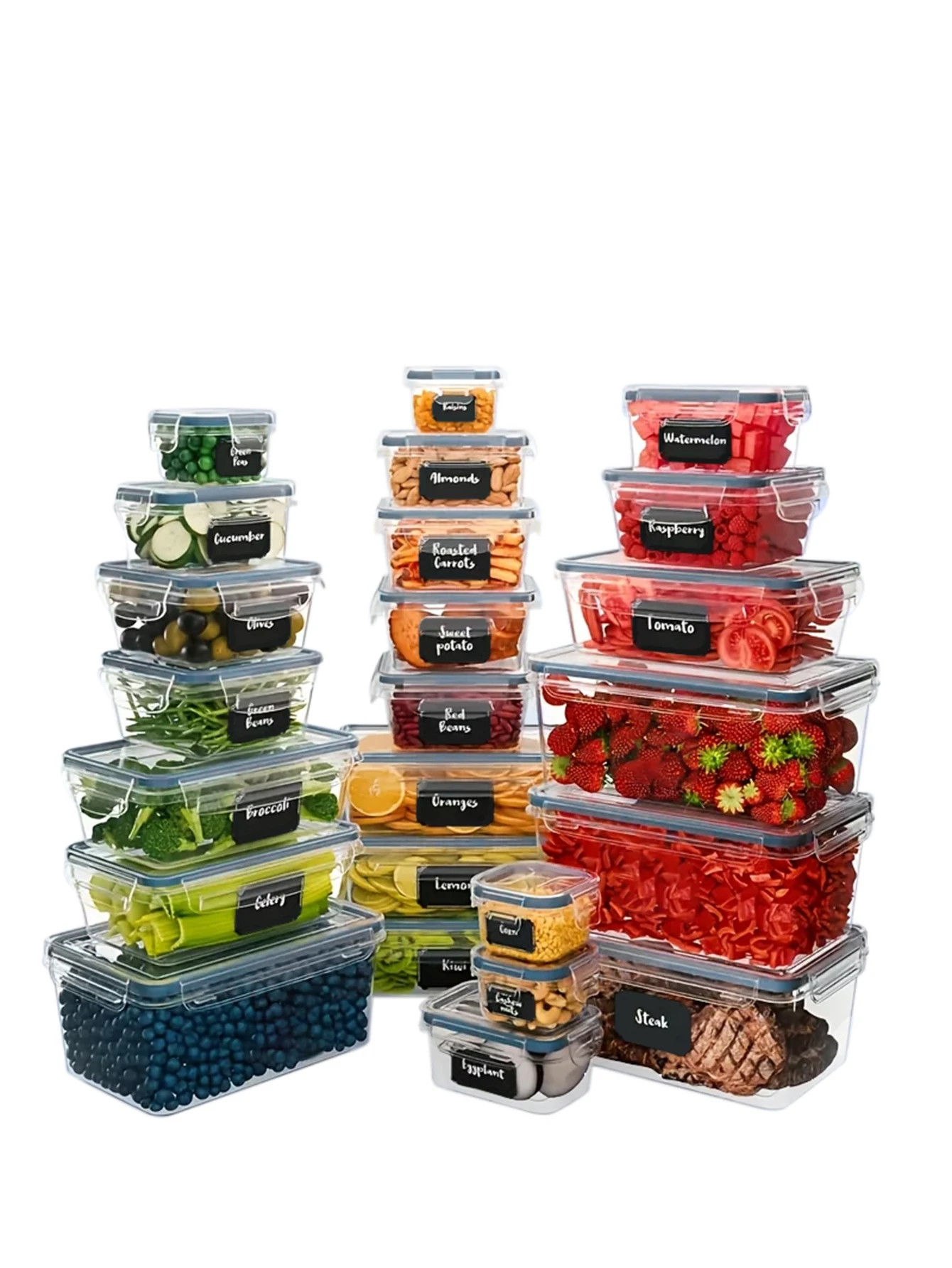 12/24pcs/sealed food storage container with buckle lid is suitable for kitchen organizing fruits vegetables with labels pens