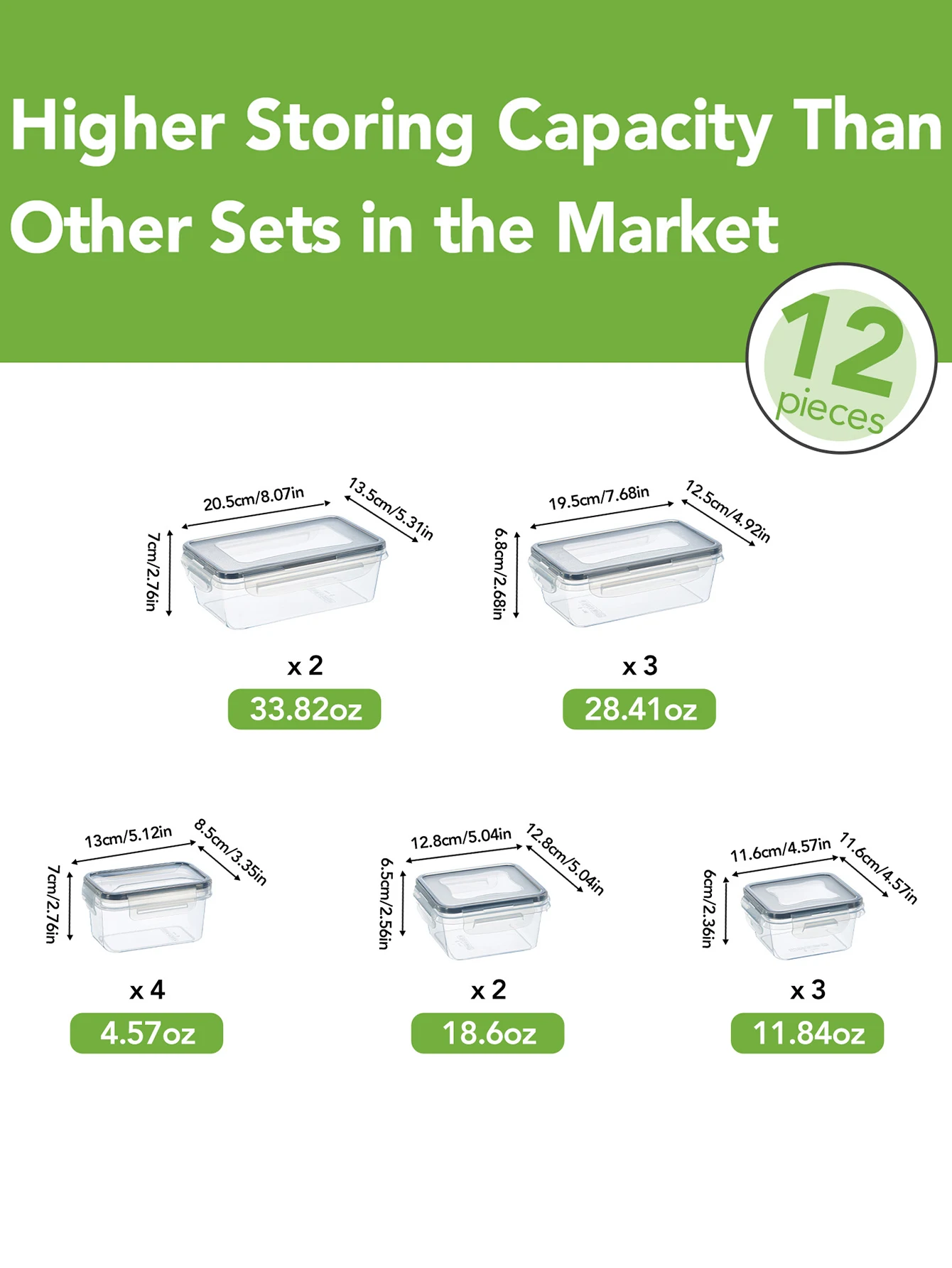 12pcs/24pcs/Food storage LIDS sealed plastic used for kitchen storage sealed and leak-proof food containers with labels marks
