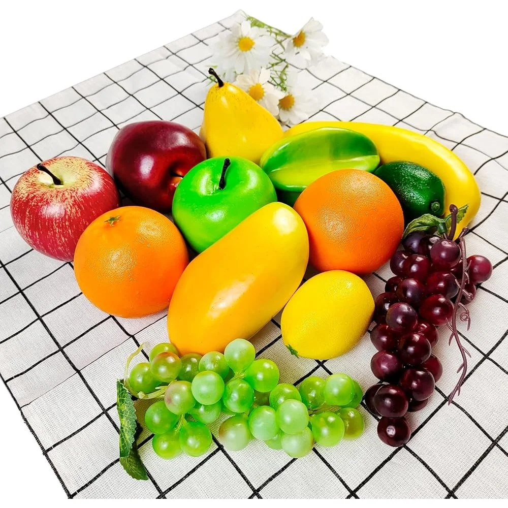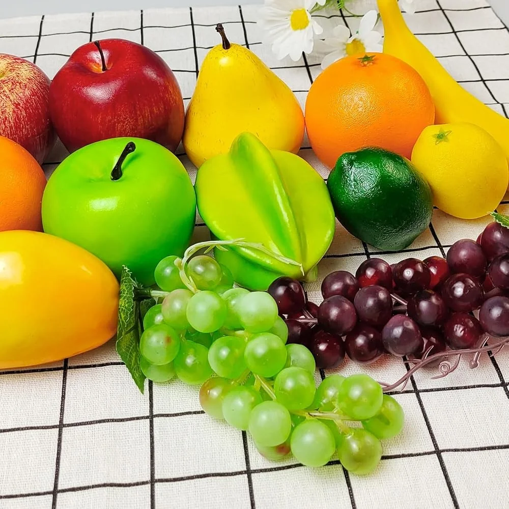 Fruits Props: These fake fruits are perfect for photos and videos of various life and home scenes. They won't rot or need to be replaced due to prolonged sitting and can be used for a long time. This set of fruit drations are some common everyday fruits, such as fake apples, bananas, grapes, etc.