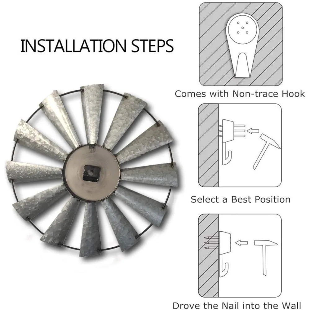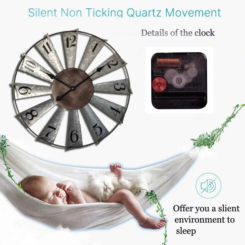30inch Windmill Distressed Metal Wall Clocks Rustic Large Decorative Clock Oversized Farmhouse Decor, Non Ticking, Battery