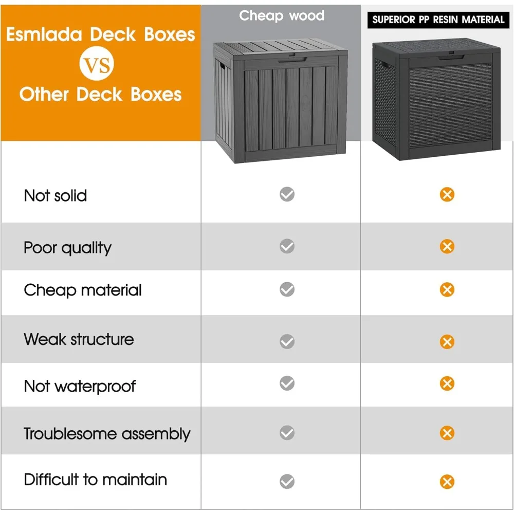 - 👍 Durable and Weather-Resistant Deck Box: Crafted from premium weather-resistant resin, this waterproof outdoor storage box is built to endure rain, snow, and sun without compromising its durability. Its robust design resists rust, peeling, and dents, making it a reliable choice for any outdoor space. The stable construction ensures the deck box stays firmly in place after assembly, providing long-lasting performance.