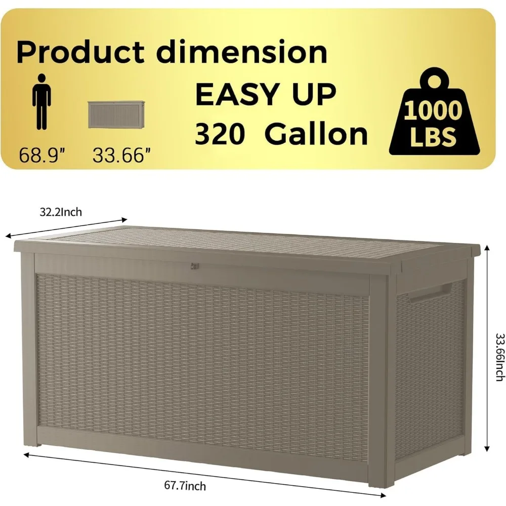 320 Gallon Lockable Resin Deck Box, Waterproof Outdoor Storage Box for Patio Furniture, Garden Tools, Pool Accessories, UV-Resistant