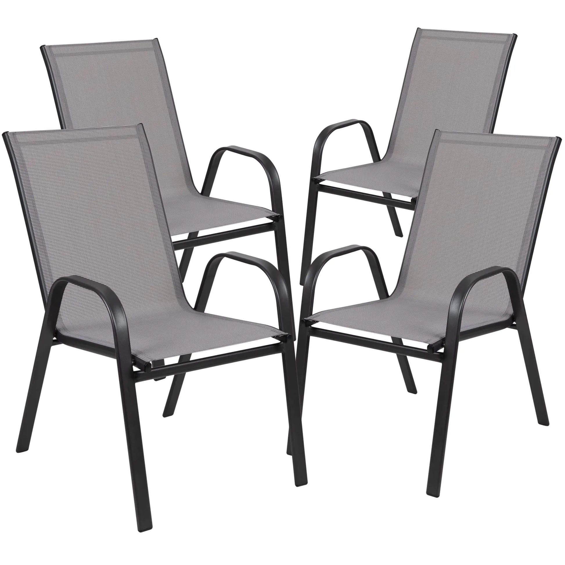 4 Metal Outdoor Chair Set Stackable Patio Textilene Dining Chair Stack Metal Frame Set of 4, Load Weight 150kg, Black,Brown,Gray