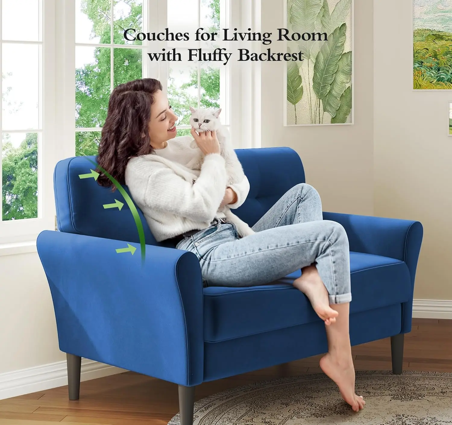 - 【Supports Up to 500lbs for Stability】- With a sturdy solid wood frame, our living room sofa is engineered for everyday use and can support up to 500lbs, making the comfy couch perfect for accommodating up to two adults comfortably. The 32D high-density foam filling, combined with a reinforced structure, evenly distributes weight to ensure consistent stability. Experience peace of mind with our solid, reliable small sofa couch!