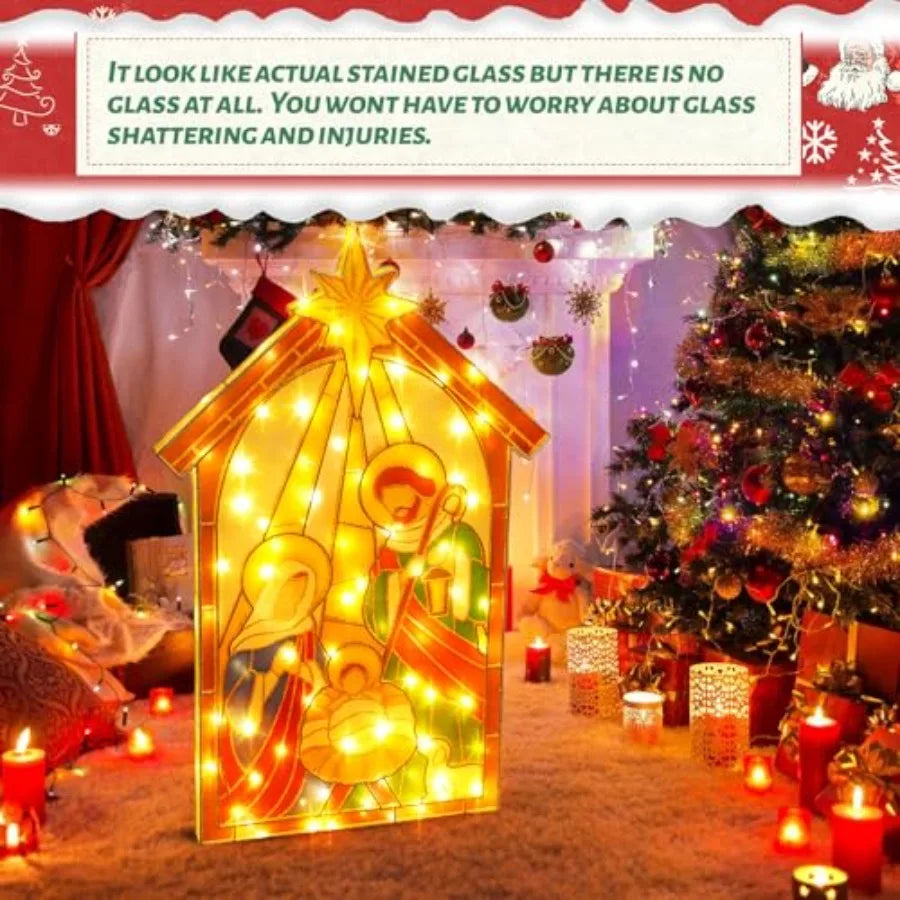 Stained Glass Look & Classic Style: Discover the enchanting beauty of our outdoor nativity scene featuring a stunning stained glass look. This nativity set outdoor showcases a vibrant depiction of Joseph, Mary, and Baby Jesus in the manger, adding a classic touch to your holiday decor and making it an eye-catching nativity scene outdoor