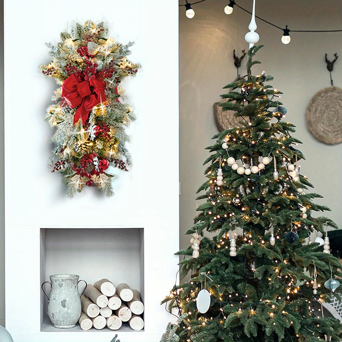 Christmas wreath with light comes with snowballs, pine cones, red berry bunches, ribbons and green leaves! Nice winter wreath christmas wreaths, garlands & swags!Purely hand-woven, in order to ensure the uniqueness of each christmas staircase swag, the real objects have slight differences!