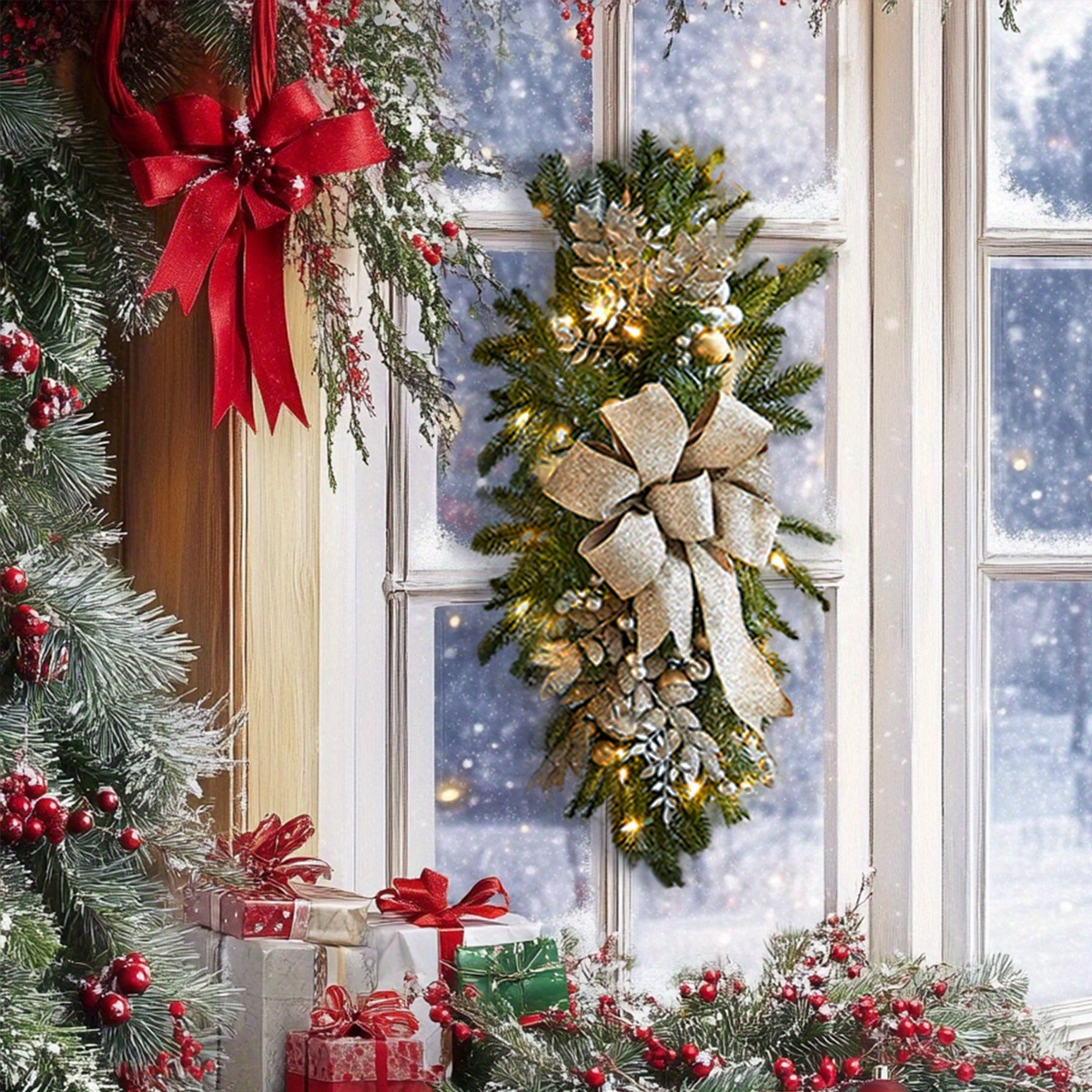Prelit Teardrop Christmas Swags With Christmas Balls, Christmas Flowers Are Perfect For Decorating Your Front Door, Walls, Windows, Fireplaces, Showcases, Porch, Stairs, Bedroom, Garden, Yard, Yard Tree, Christmas Tree, Fence, Mailbox, Farmhouse, Restaurant, Office And Any Place You Want To Add A Warm Christmas Atmosphere!