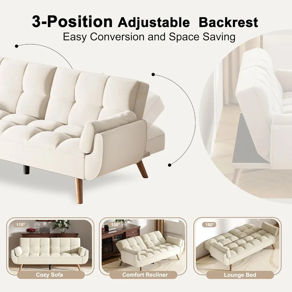 - 3-IN-1 VERSATILITY | SIT, LOUNGE, OR SLEEP IN SECONDS Effortlessly adapt to any situation. The adjustable backrest offers three distinct positions to fit your needs: an upright sofa for focused work or conversation, a reclined lounger for relaxing with a book, and a fully flat bed for a quick power nap or accommodating an overnight guest. It’s one piece of furniture that does the work of three.