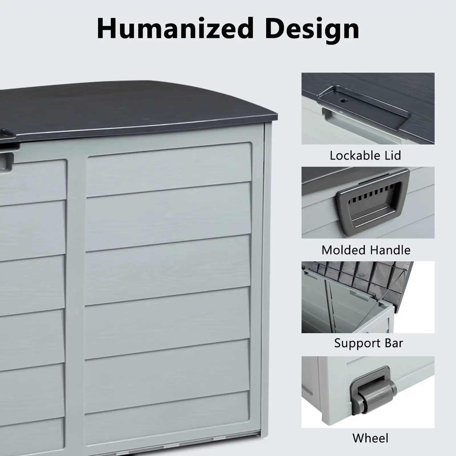 -Additionally, this deck box chest is quick and easy to assemble with no tools required. You can have it ready in just a matter of minutes after delivery, allowing you to start utilizing it for your storage needs right away.