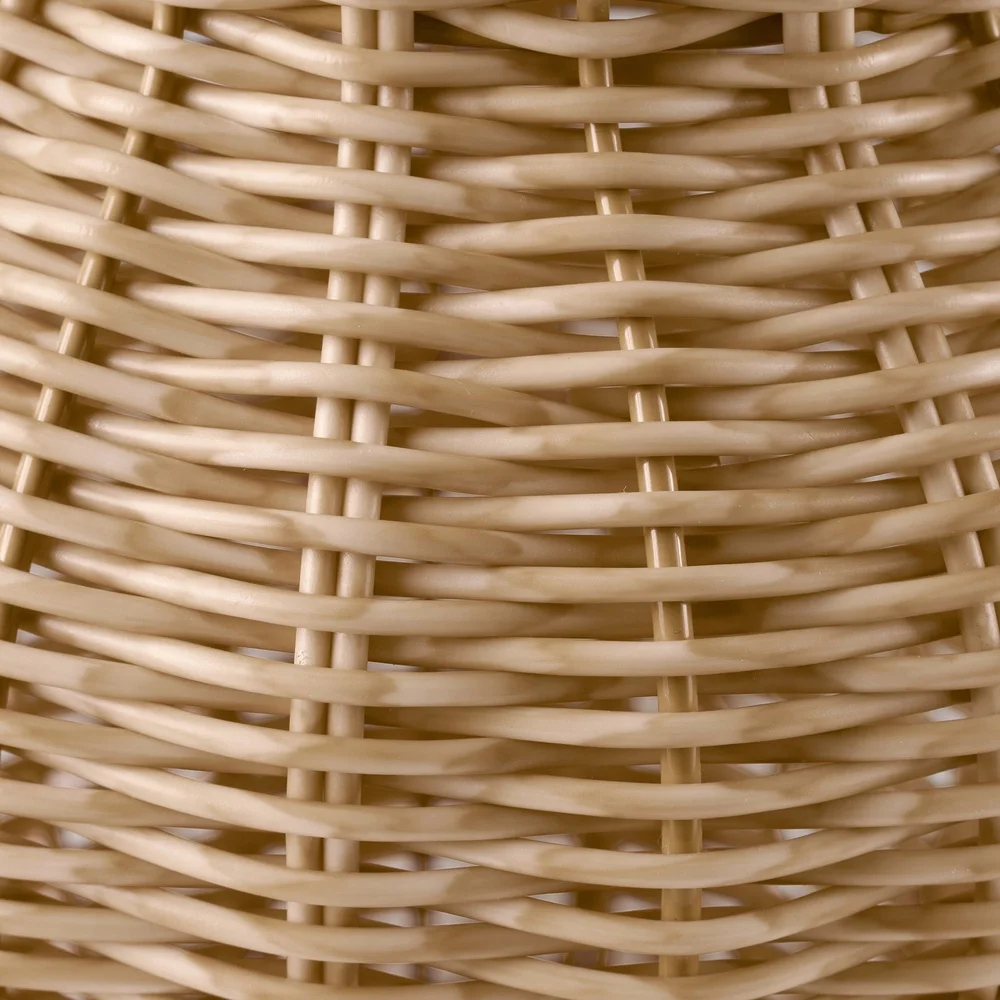 Features woven rattan-inspired design