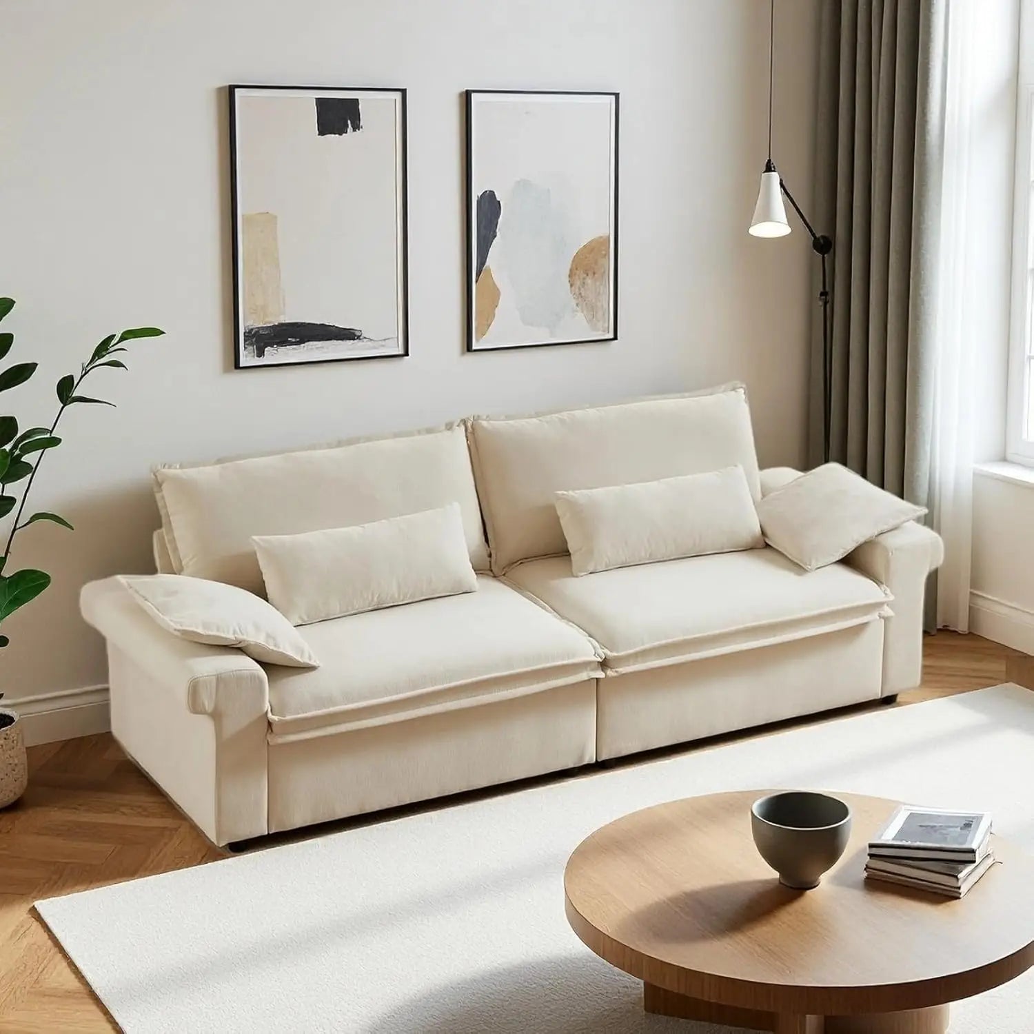 - Multi-Scenario Functionality: With its broad arms, plush throw pillows, and cozy chenille fabric, this deep-seated sofa seamlessly complements any decor style, be it traditional, transitional, glam, coastal, rustic, or bohemian