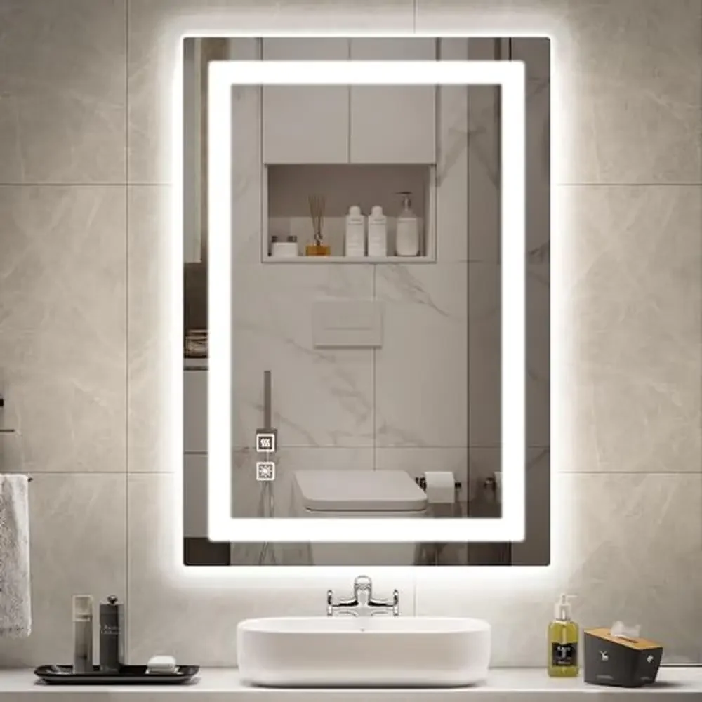 Backlit Front Lighted Bathroom Vanity Mirror 24x36 Inch LED 3 Colors Adjustable Brightness Defogger Touch Sensor Horizontal