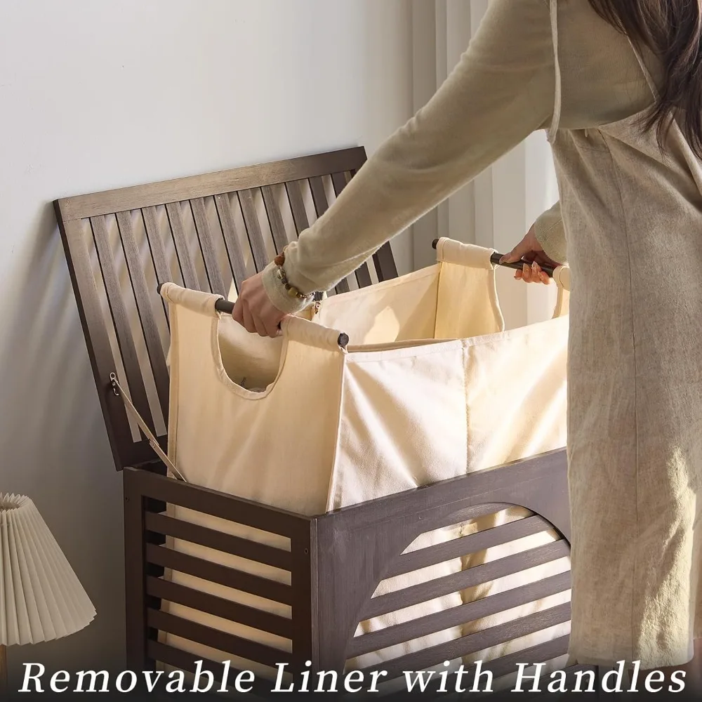 Bamboo Laundry Hamper with Lid and Removable Liner, Dual-Section Clothes Basket for Bedroom Storage and Aesthetics
