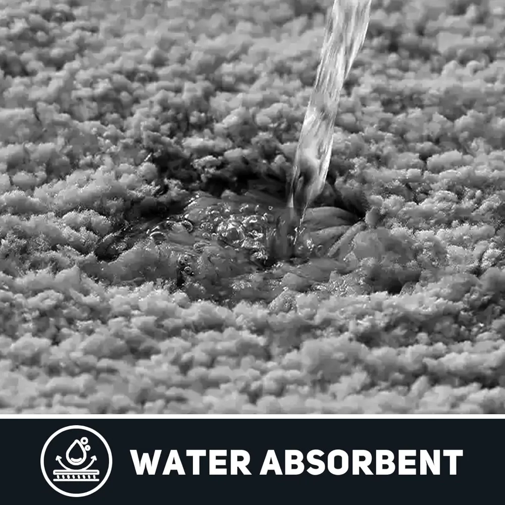 - 【Ultra Absorbent Bathroom Set】The soft shaggy microfiber fabric, will not let the water drip onto the floors when you are stepping out of your bath, shower, or getting ready by the sink. Moisture is trapped in the mat's deep pile, allowing the rug to dry quickly and cleanly.