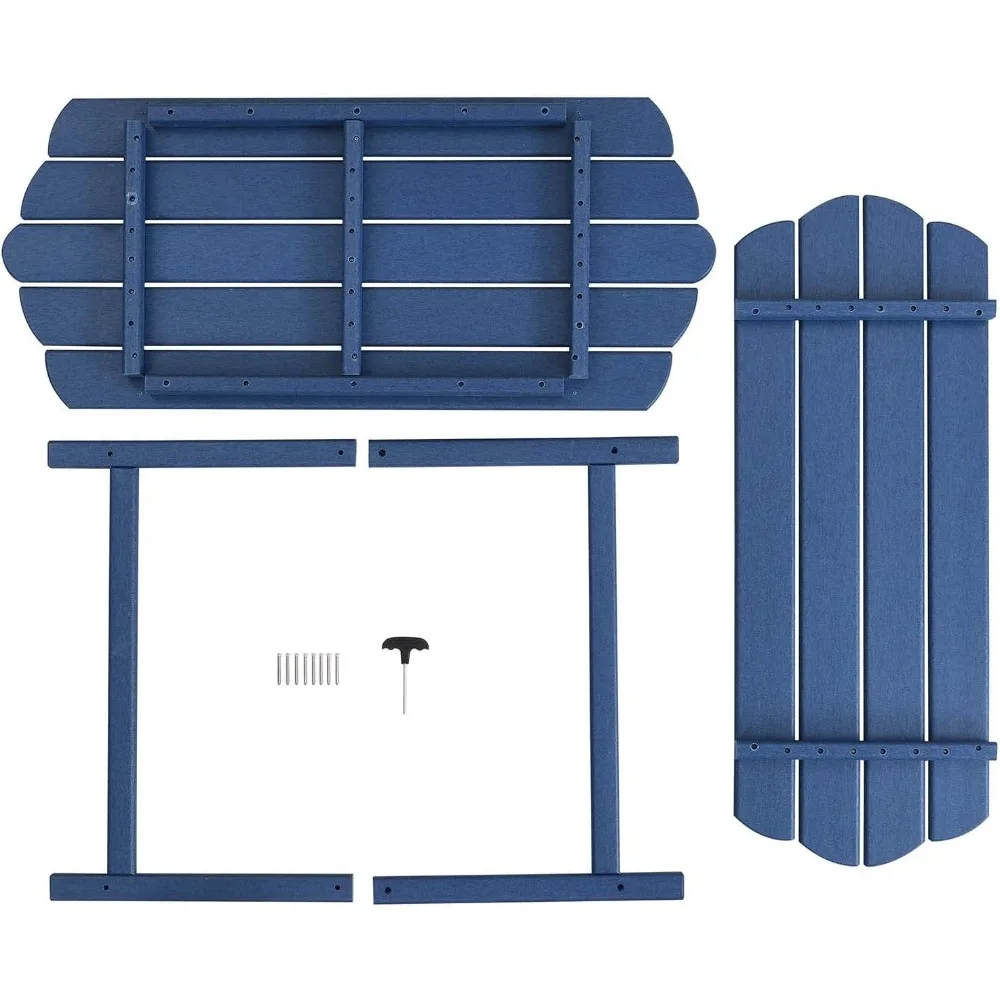Blue Outdoor Patio Coffee Table - Adirondack Deck Furniture - HDPE Pool Side Table - 17.7 x 39.4 Inches