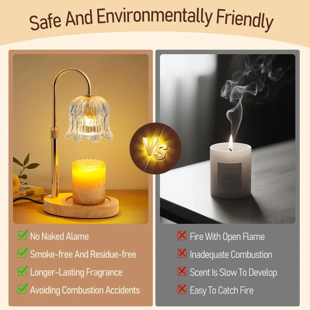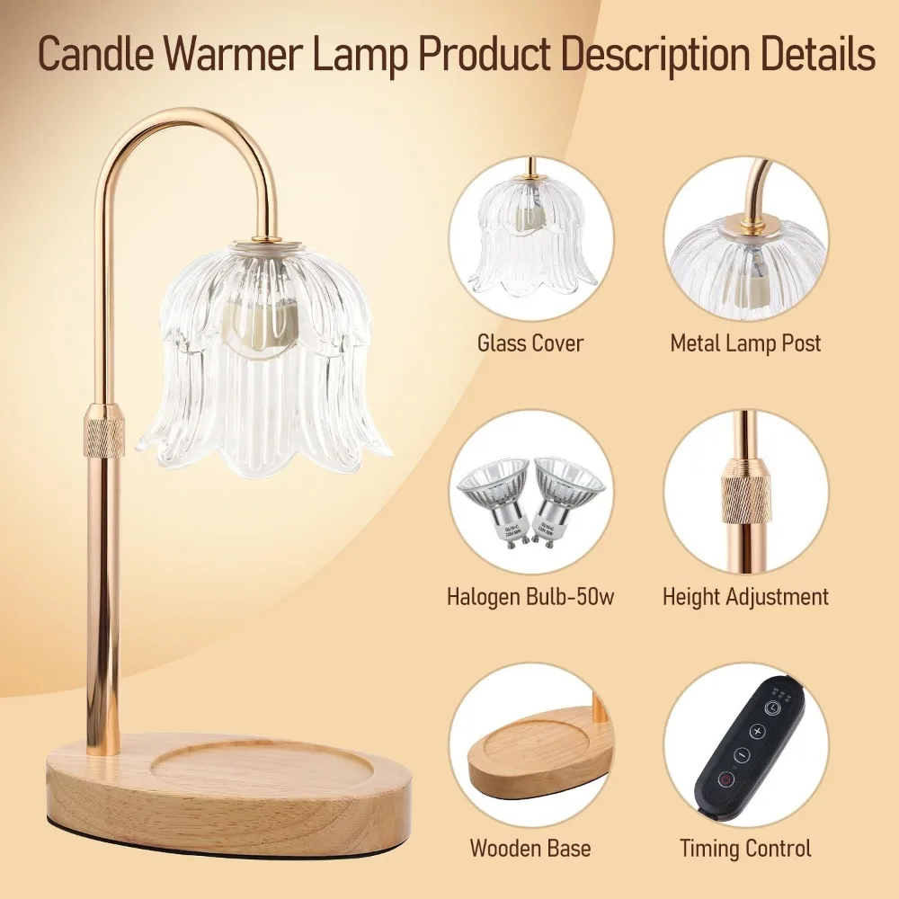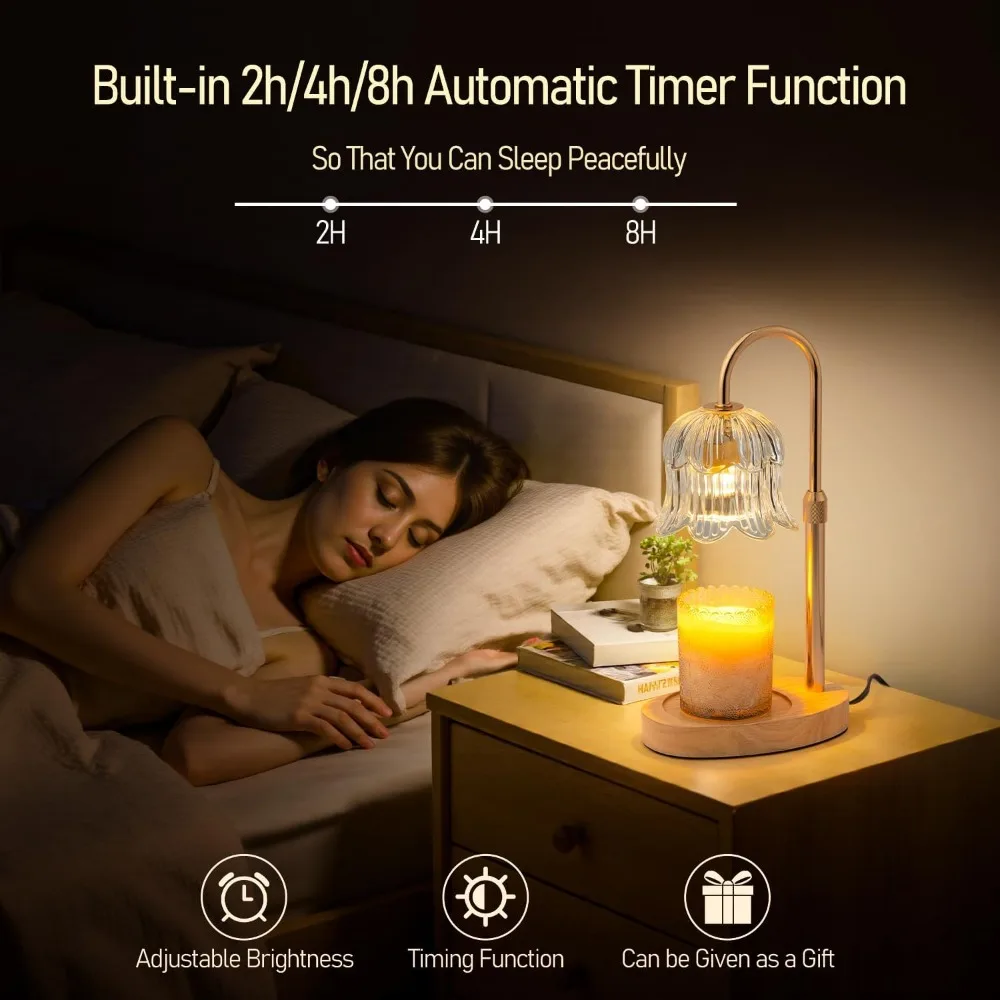 Candle Warmer Lamp with Timer: Adjustable Height Brightness Scented Candle Lamp Flameless Heating Suitable-Home Decor