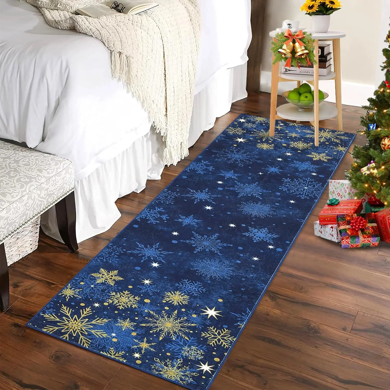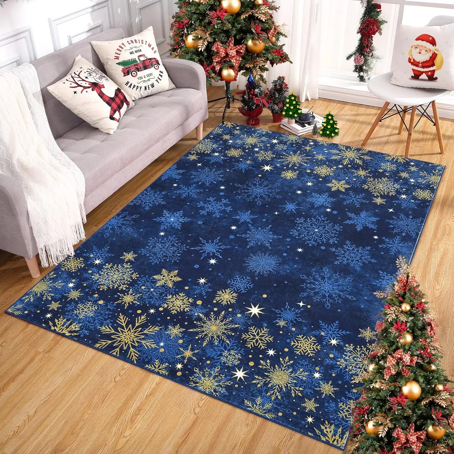 Christmas Area Rug Machine Washable Rug Snowflake Decor Entryway Rugs Non Slip Low Pile Soft Carpet for Living Room Dining Room