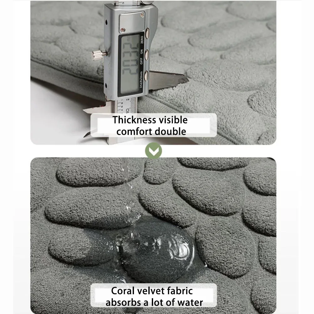 Cobblestone Embossed Bathroom Mat Water Absorbing Bathroom Rug Non-Slip Bathtub Floor Rug Washable Bathroom Accessories