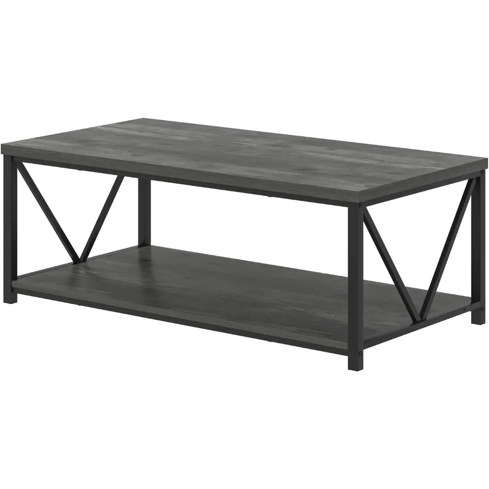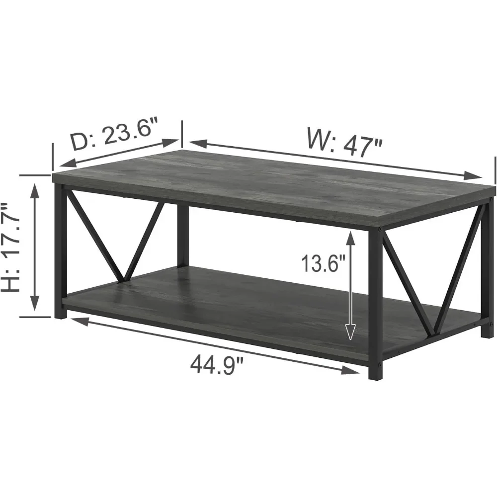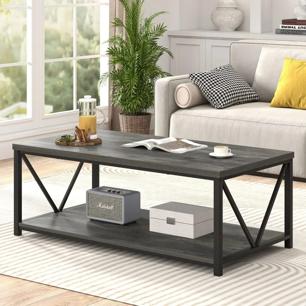 - Modern Rustic Style: Crafted with a industrial grey wood grain surface and black powder-coated metal frame, this coffee table combines modern, industrial, and retro charm. Its simple yet unique design enhances any living room, reception room, or office