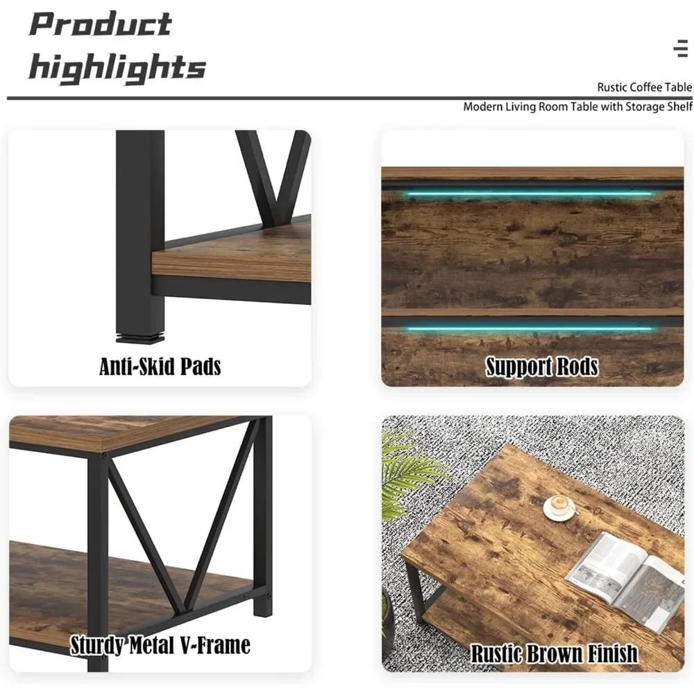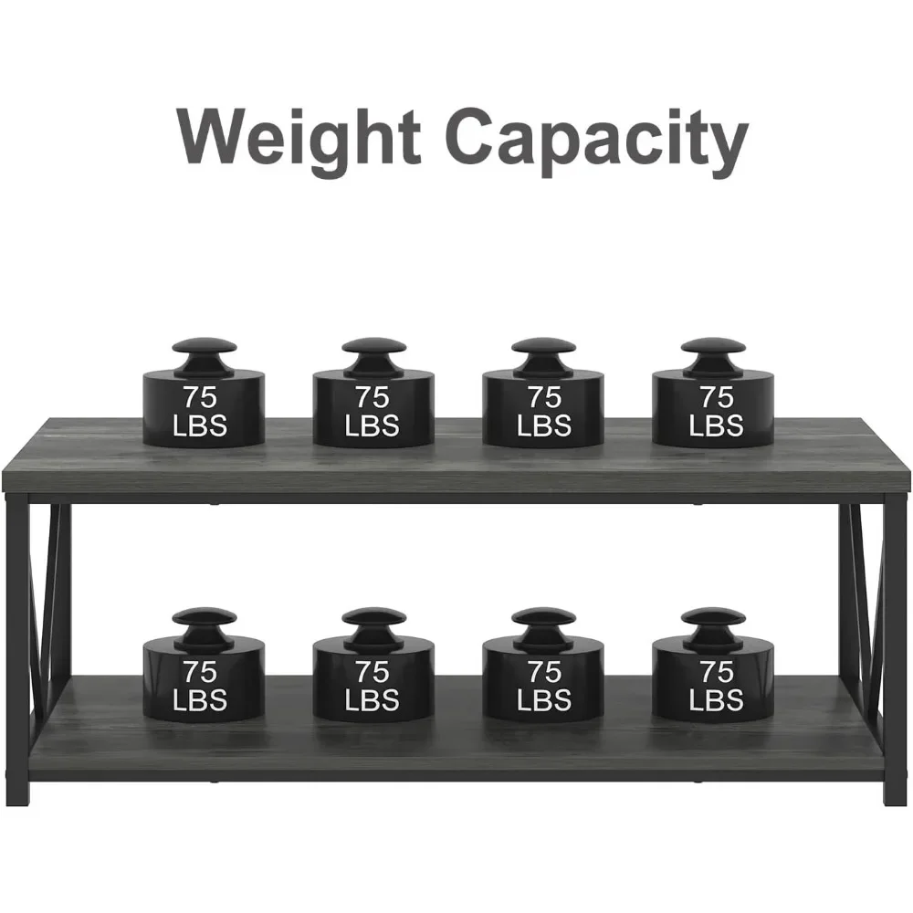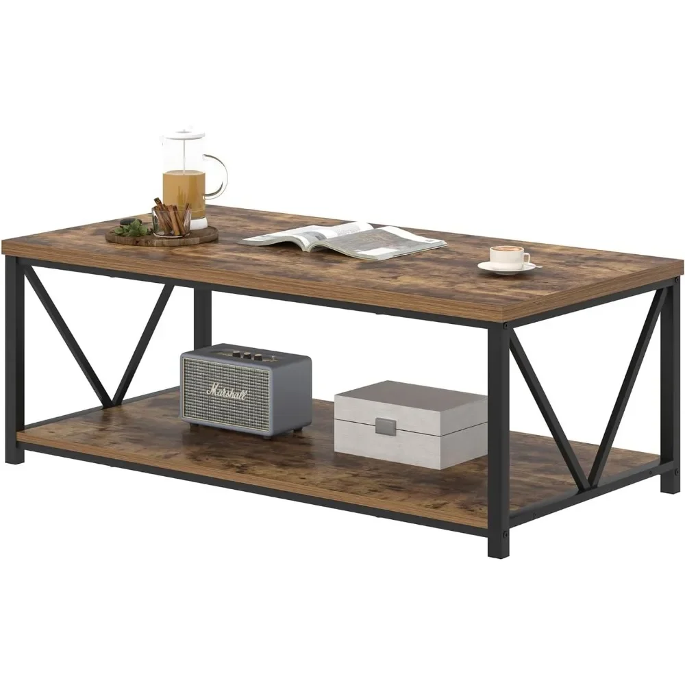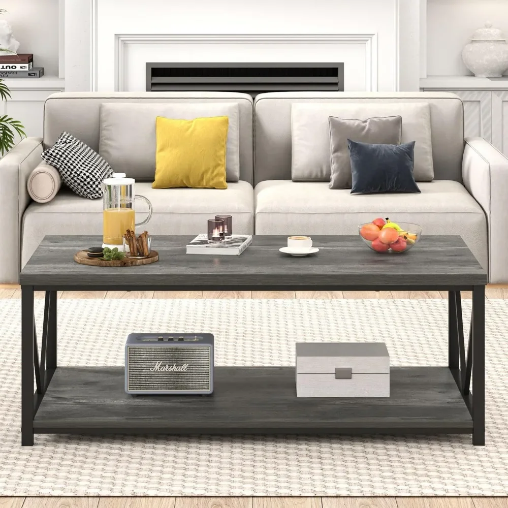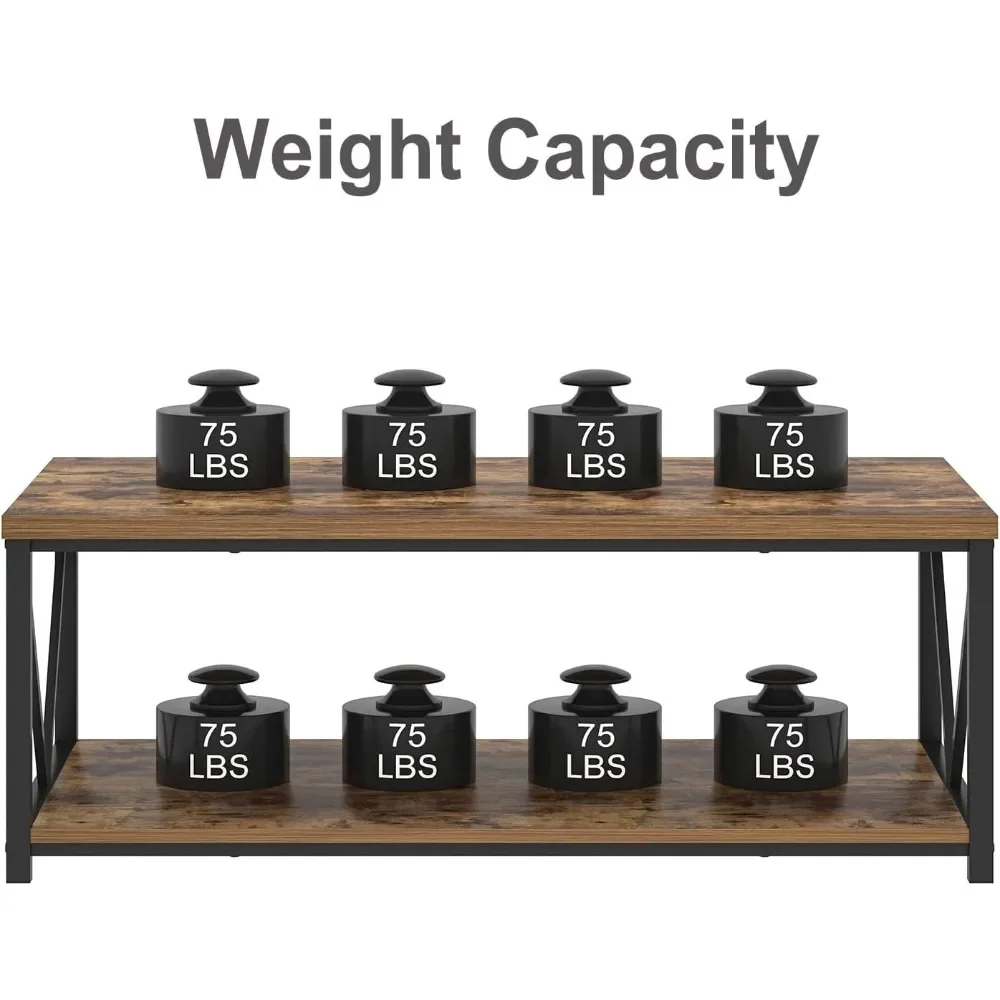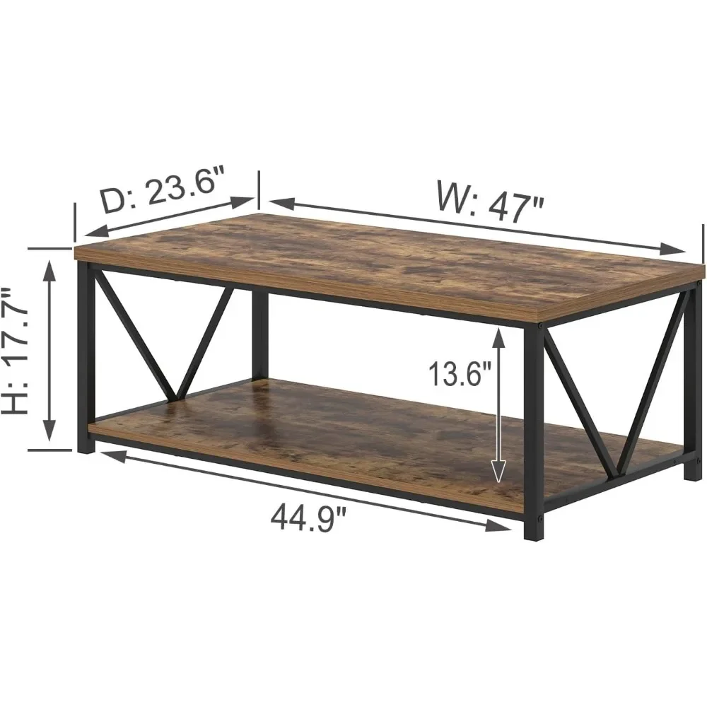 Coffee Table,Rustic Wood and Metal Living Room Table,Industrial Rectangle Center Table with Storage Shelf,47 Inch Coffee Tables (Multiple colors)