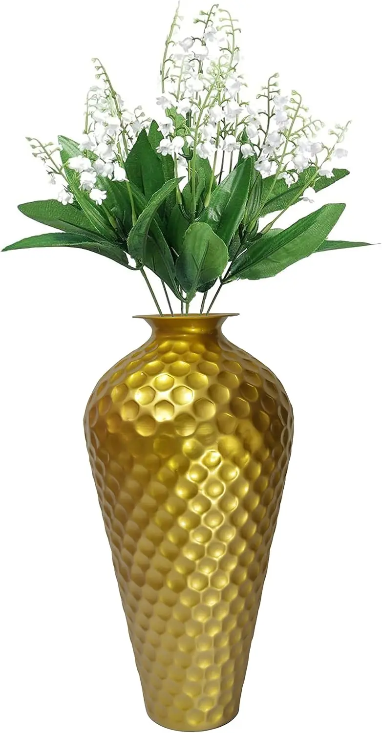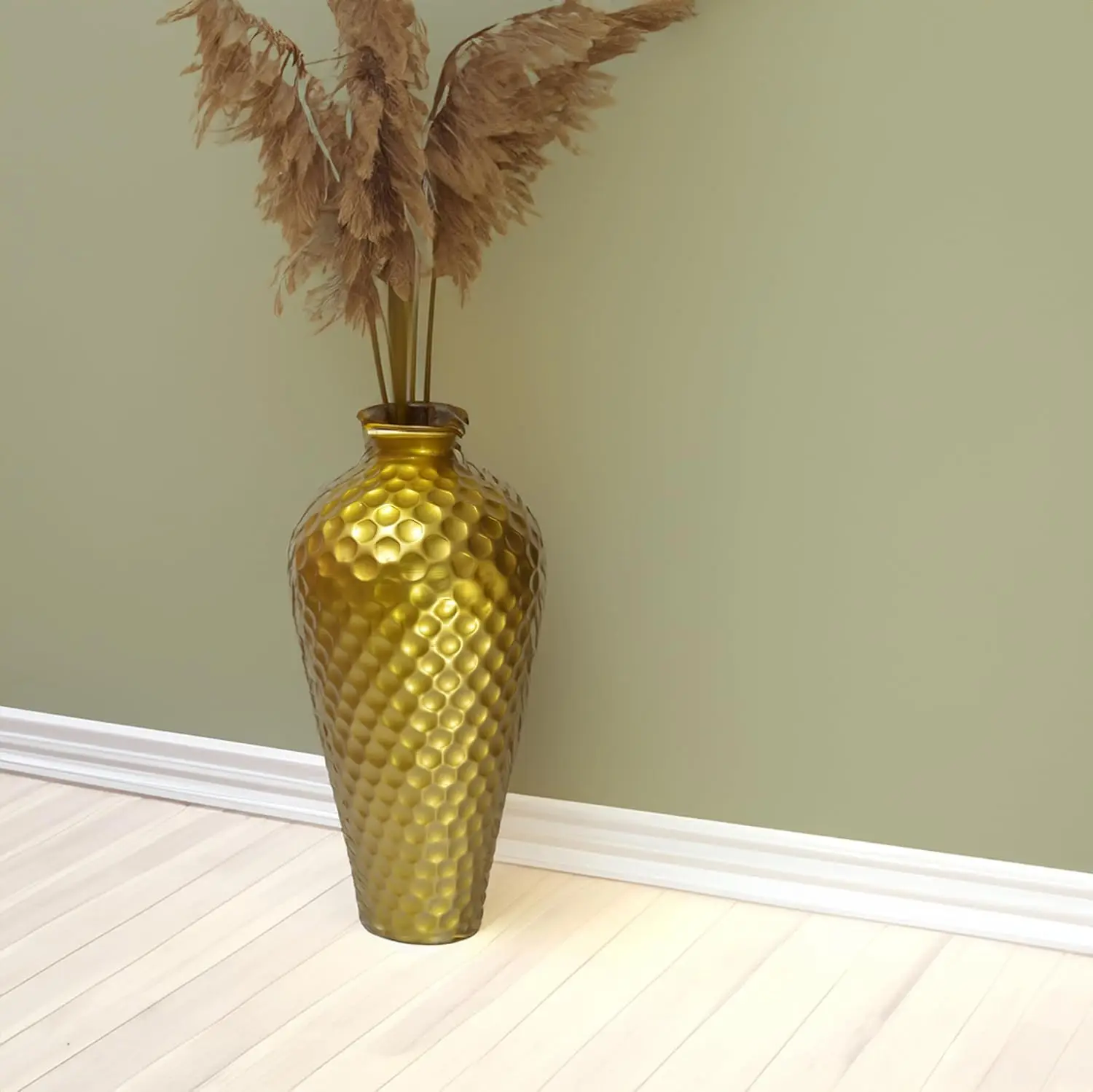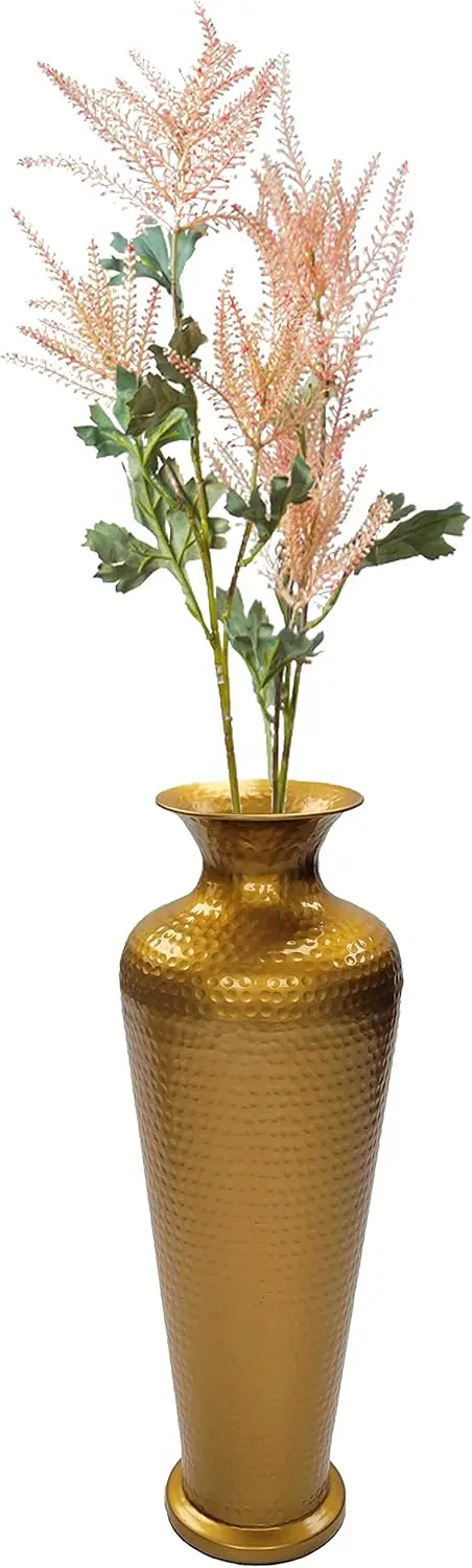 Decorative Modern Gold Metal Hammered Floor Vase Elegant 23Inch Tall Trumpet Shape for Entryway Living Room or Dining Room Decor