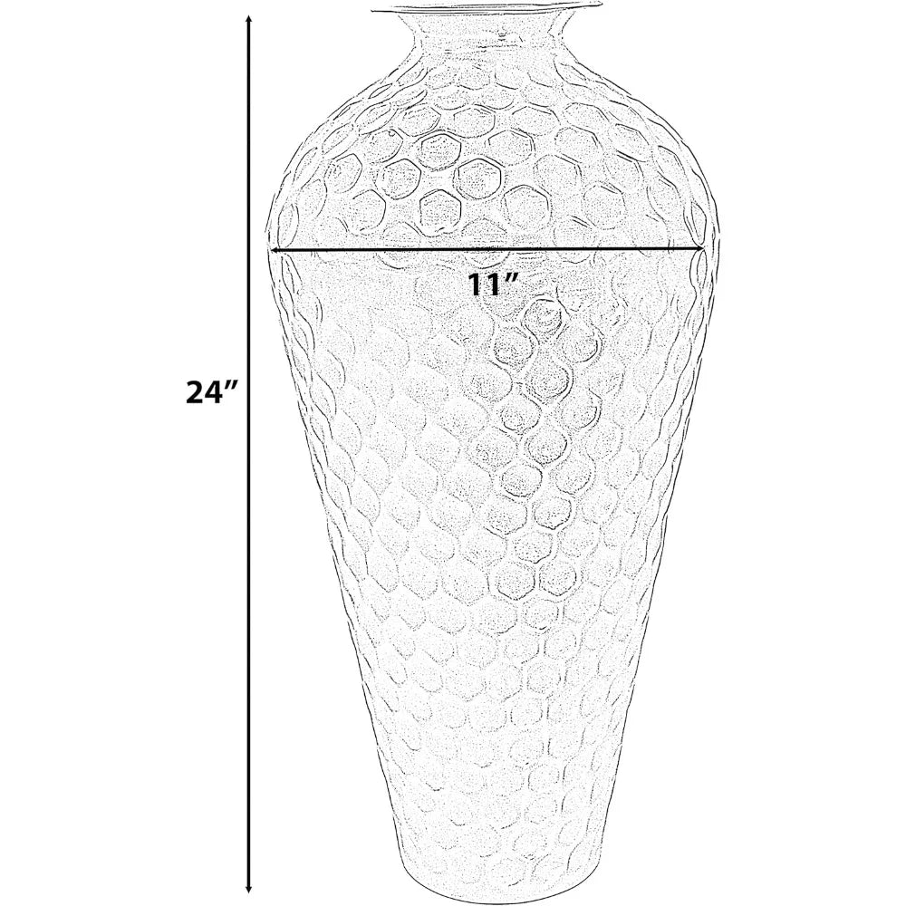 - Dimensions: Standing tall at 25.25 inches with a diameter of 11 inches, this metal floor vase commands attention as a striking centerpiece in any room