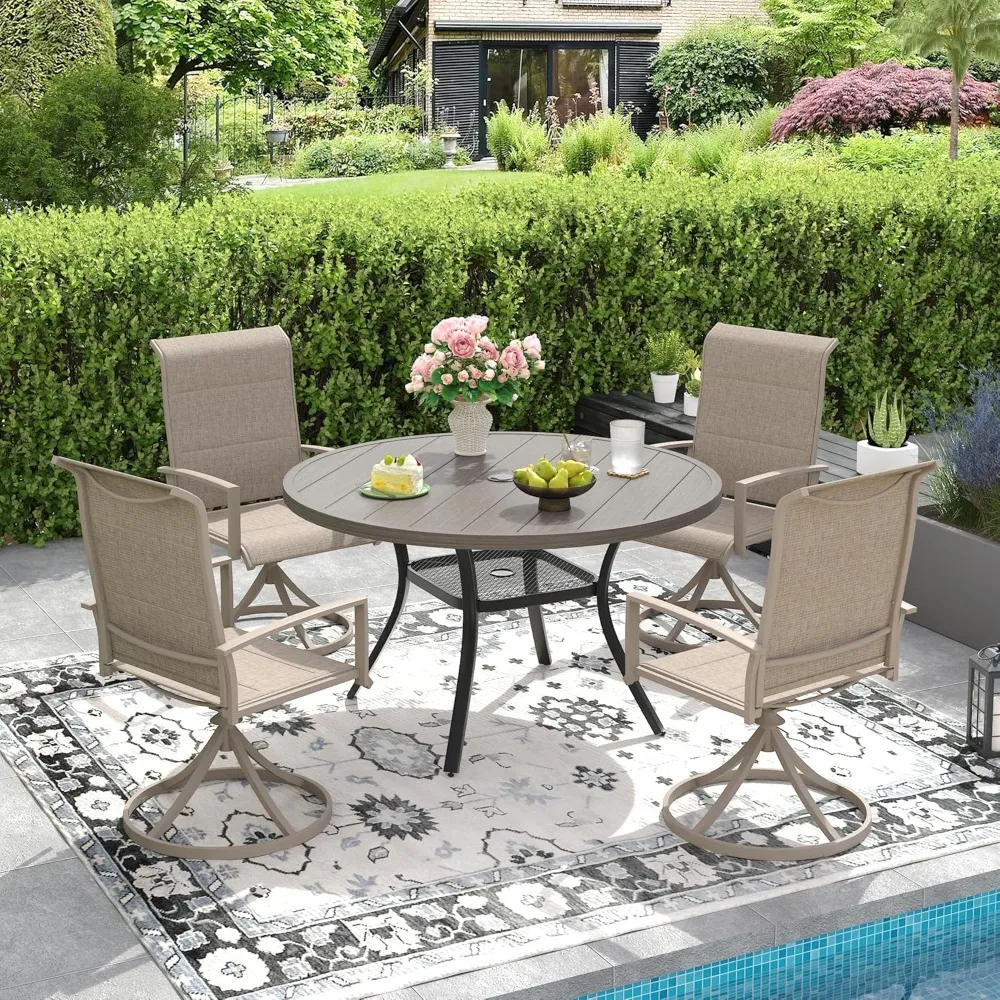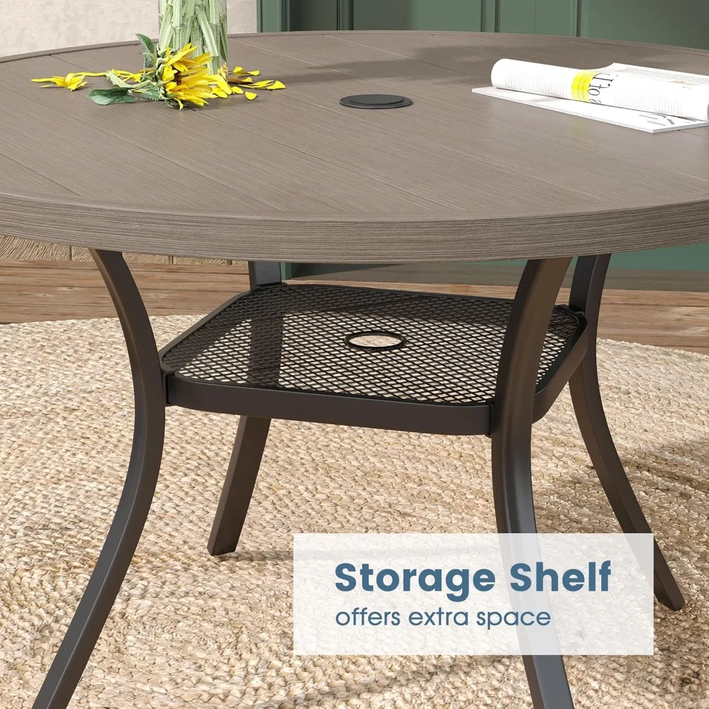 DIFY Outdoor Dining Table for 4, Round Patio Table with Umbrella Hole for Garden, Backyard and Porch (Grey)