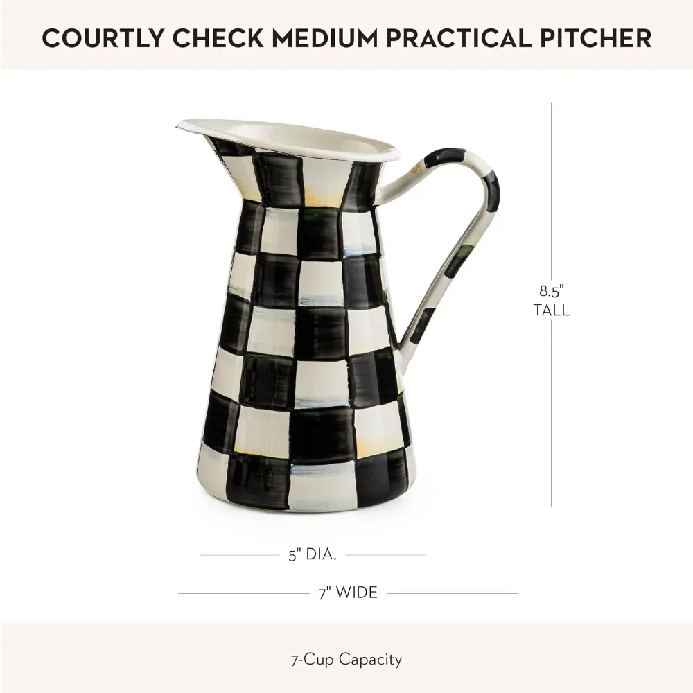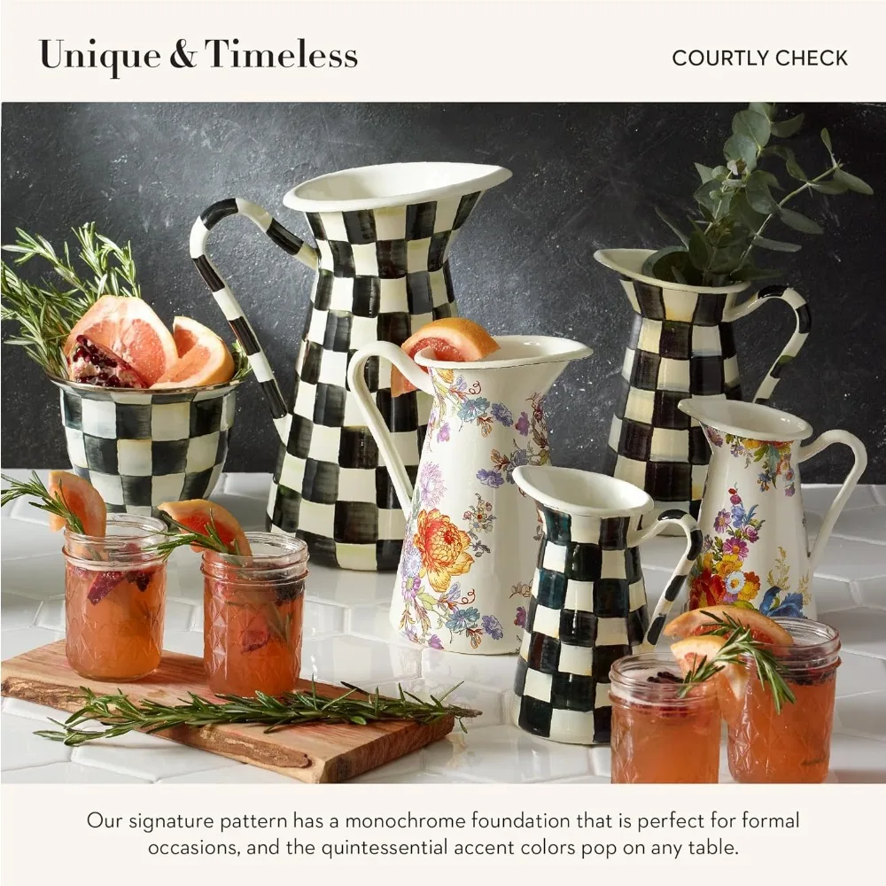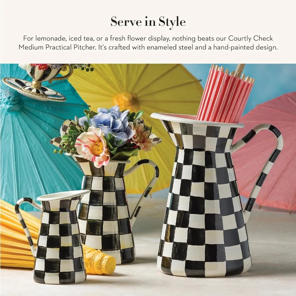 - ENTERTAINING & PARTY ESSENTIAL: The classic Courtly Check Practical Drink Pitcher features glossy, high-contrast hand-painted black-and-white checks and is trimmed in gold luster. It makes a stylish water jug and party pitcher on any table!