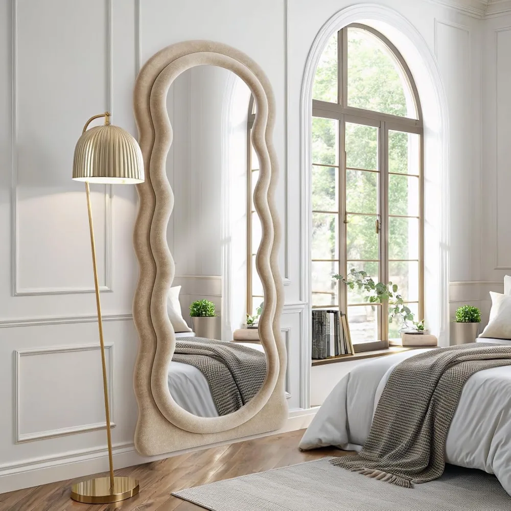 - Blue Flannel Irregular Wavy Frame Floor Mirror: The full length standing mirror features a modern style that can complement any type of room decor, adding a touch of elegance to your room. It will be a great wall decor art piece for your home. This full body mirror with sleek looking is also great for selfies or pictures in general