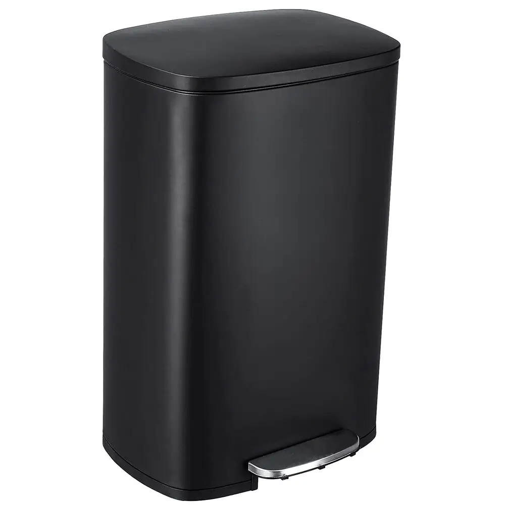 Homfa 13 Gallon (50L) Rectangular Trash Can Stainless Steel Kitchen Garbage Can W/ Lid Black