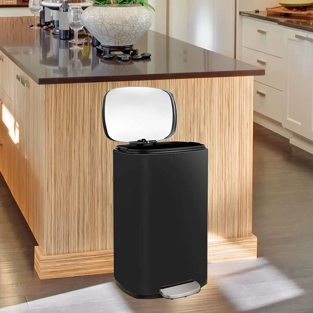 AMPLE SPACE TRASH CAN: 50L capacity trash can is the ideal size for daily use in the family. The rectangular trash can obtains the maximum capacity with the smallest space. Simple and elegant appearance complements your family style. Trash can has no hard edges to protect the safety of you and your family.