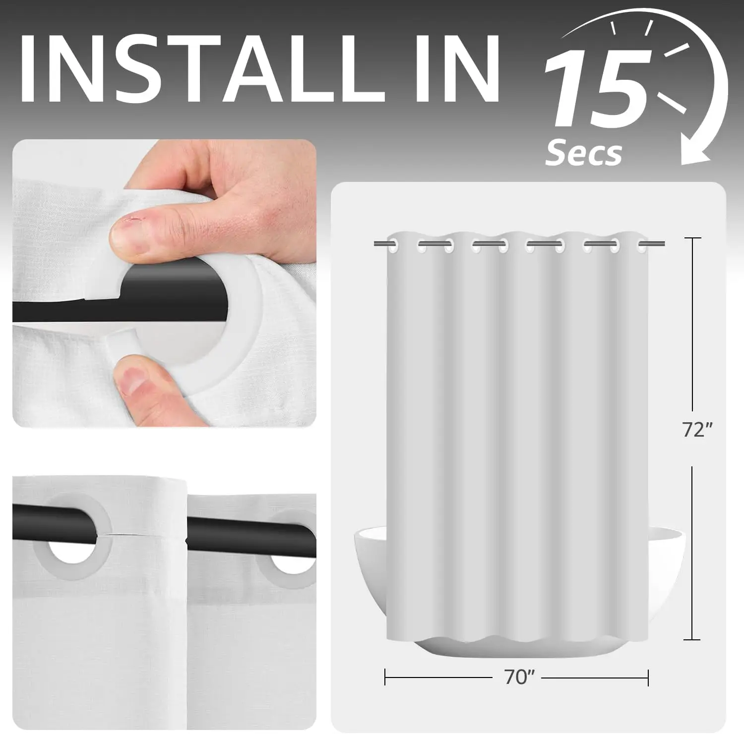 Transform your bathroom into a sanctuary of modern elegance with our exquisite hookless shower curtain. Featuring a captivating black and white striped design, this 70x72 inch curtain combines timeless sophistication with practical functionality, making it the perfect addition to any home, hotel, or spa. **Key Features & Benefits:** - **Modern Dual-Stripe Design:** Elevate your bathroom's aesthetic with contemporary black stripes on a subtly textured woven fabric. The clean lines and pristine white backdrop create a refreshing, sophisticated look that complements any decor style. - **Artistic Craftsmanship:** Meticulously crafted for lasting durability, this curtain offers a soft touch that feels luxurious against your skin. Every detail is thoughtfully designed to ensure quality and resilience in everyday use. - **Efficient Setup:** Experience hassle-free installation with split rings included—no hooks needed! This feature makes it ideal for compact bathrooms or quick updates, blending modernity with effortless functionality. - **Soft & Waterproof Fabric:** Enjoy the perfect balance of comfort and protection. The fabric is not only gentle to the touch but also effectively waterproof, keeping your space dry and stylish without compromising on softness. **Why You'll Love It:** Imagine stepping into a bathroom that feels like a retreat—our shower curtain brings that vision to life. Its elegant design adds a touch of luxury while the practical features ensure convenience. Whether you're upgrading your home bathroom or outfitting a hotel suite, this curtain delivers both beauty and reliability. **Perfect For:** - Homeowners seeking a chic, easy-to-install upgrade - Hotel and spa managers looking for durable, elegant amenities - Anyone who values modern design without sacrificing practicality **How It Enhances Your Space:** The black and white stripes create visual interest without overwhelming your decor, making it versatile for various settings. From minimalist bathrooms to more elaborate setups, this curtain adapts seamlessly, enhancing the overall ambiance with its understated charm. Take the first step toward a more beautiful bathroom today! Add this stunning hookless shower curtain to your cart now and experience the blend of elegance and ease that so many are raving about. Your satisfaction is our priority—join countless happy customers who have transformed their spaces with this must-have piece.