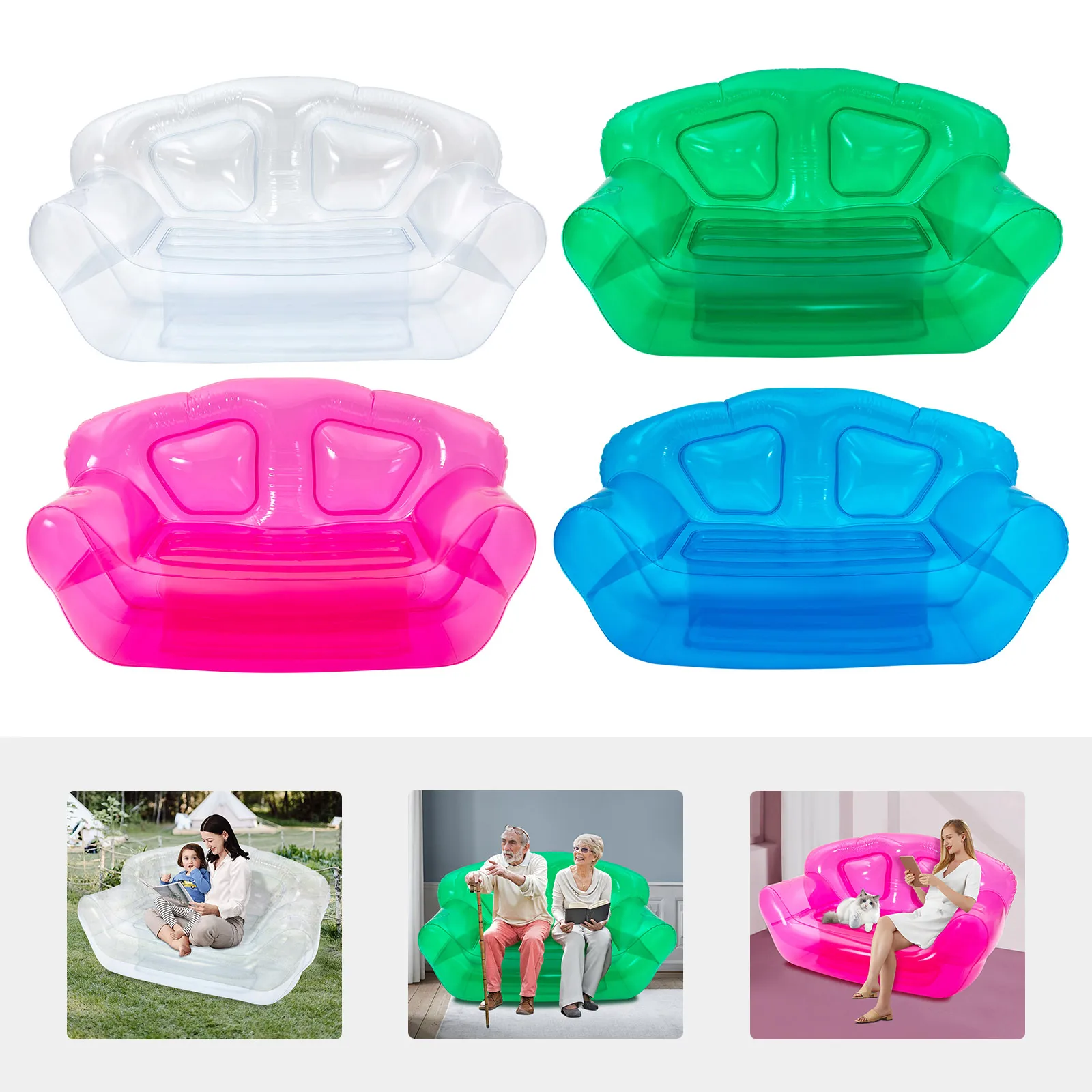 Inflatable Sofa Seat Clear/Green/Red/Blue Pvc Portable Air Sofa Camping Yard Outdoor Home Inflatable Couch with 3 Valves