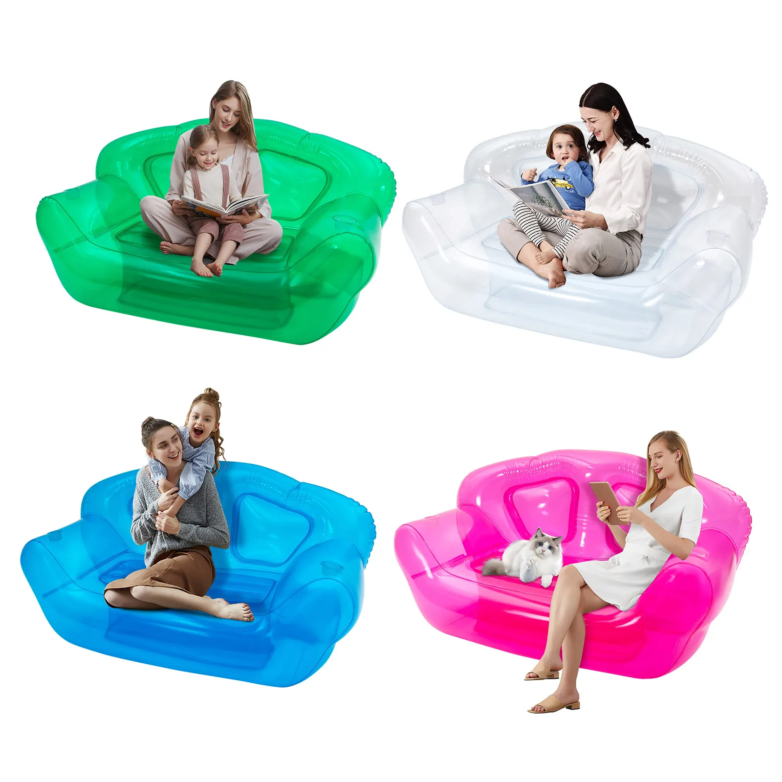 Inflatable Sofa Seat Clear/Green/Red/Blue Pvc Portable Air Sofa Camping Yard Outdoor Home Inflatable Couch with 3 Valve