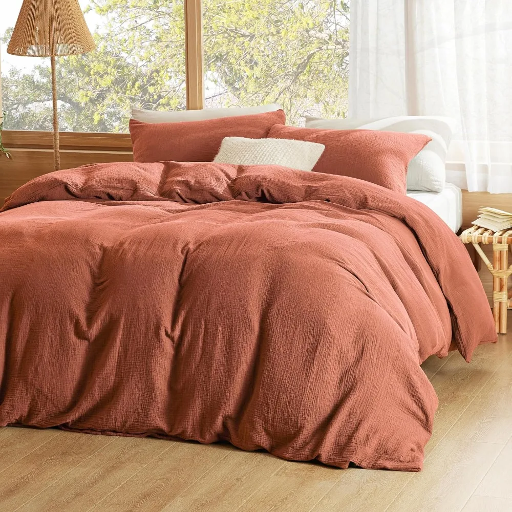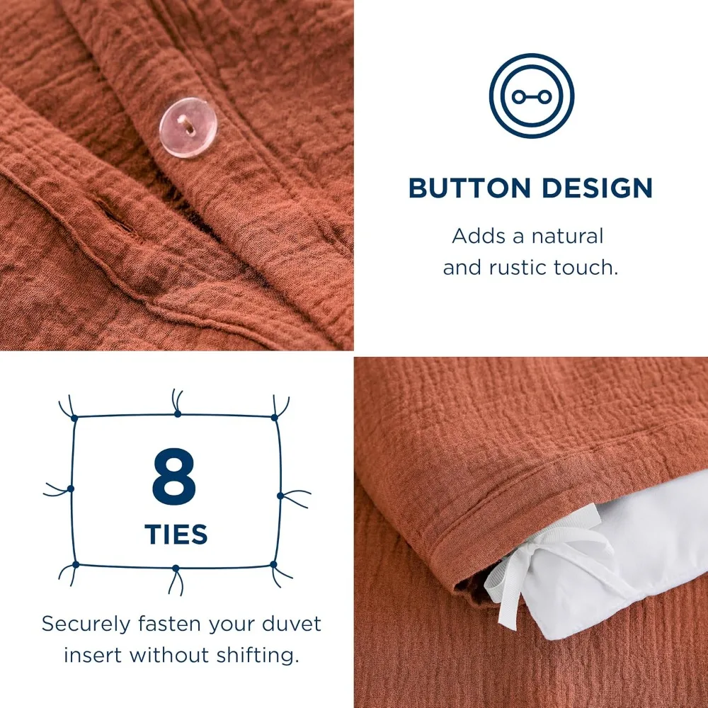 King Size 100% Cotton Muslin Duvet Cover - Ultra Soft, Breathable, Lightweight Linen-Like Gauze Comforter Cover Set