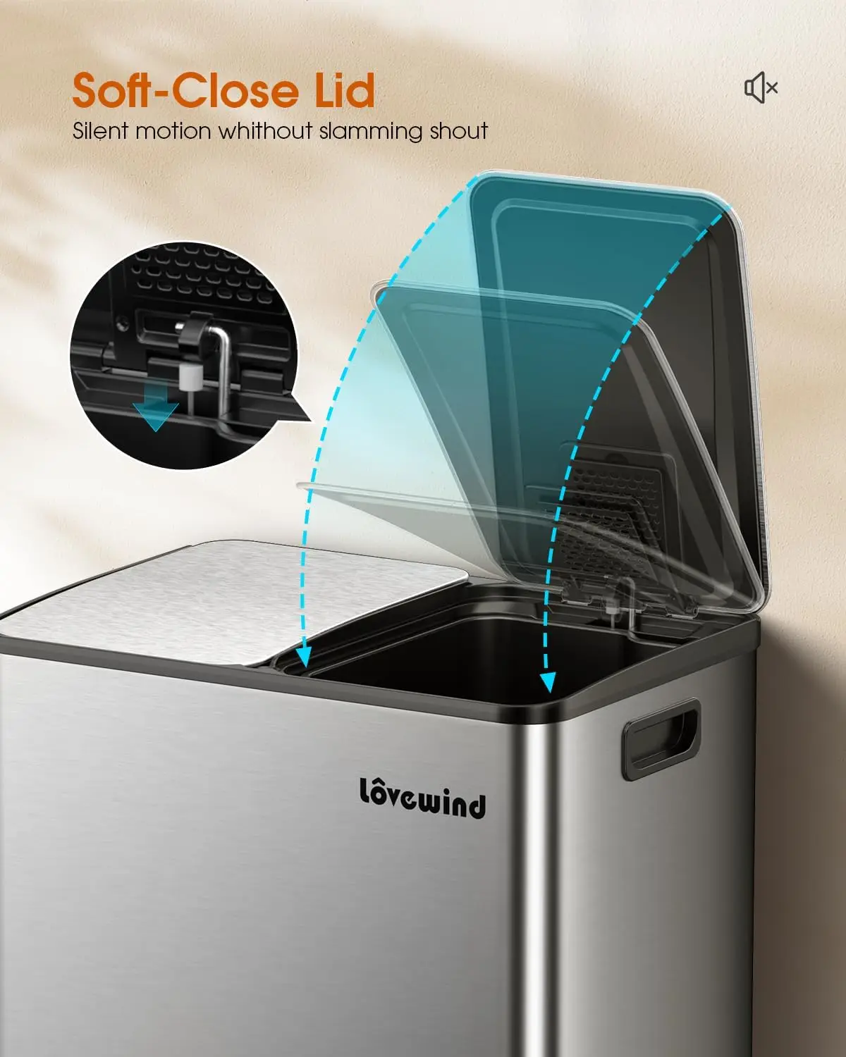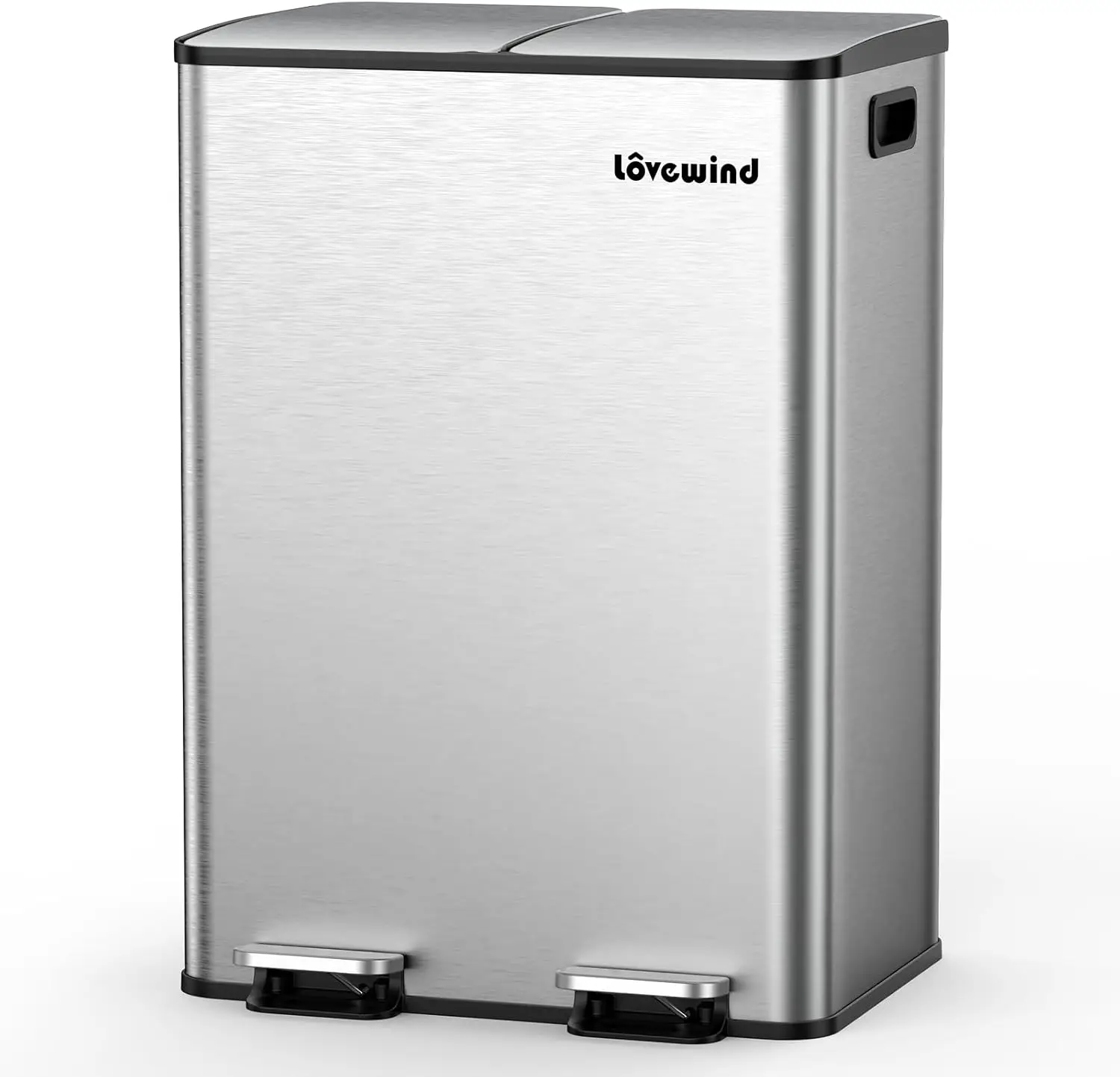 - Stainless Steel Construction: Lovewind dual trash can is made from high-quality stainless steel, making it a long-lasting addition to your kitchen and easy to clean