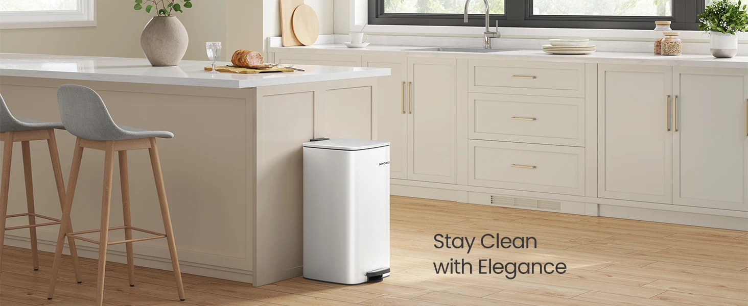 【EFFICIENTLY COMPACT】This trash can, with its rectangular opening, offers a 8-gallon capacity within a compact footprint, enhancing space utilization in your kitchen