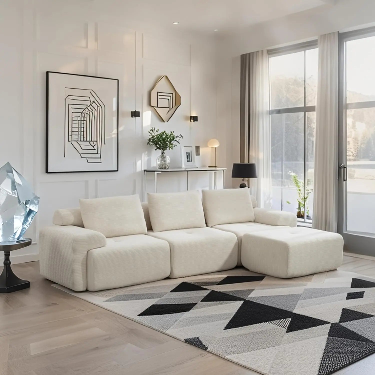 - Modular Magic: Customizable Sectional Sofa Unleash creativity with this modular couch system! Freely configure as L shaped couch, sofa with chaise, or standalone pieces. Hidden straps secure modular sectional sofa combinations while movable ottoman adds versatility.