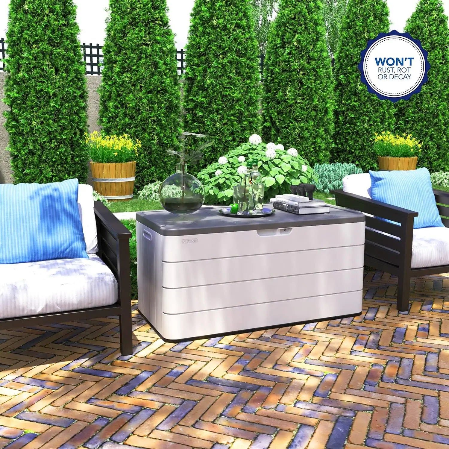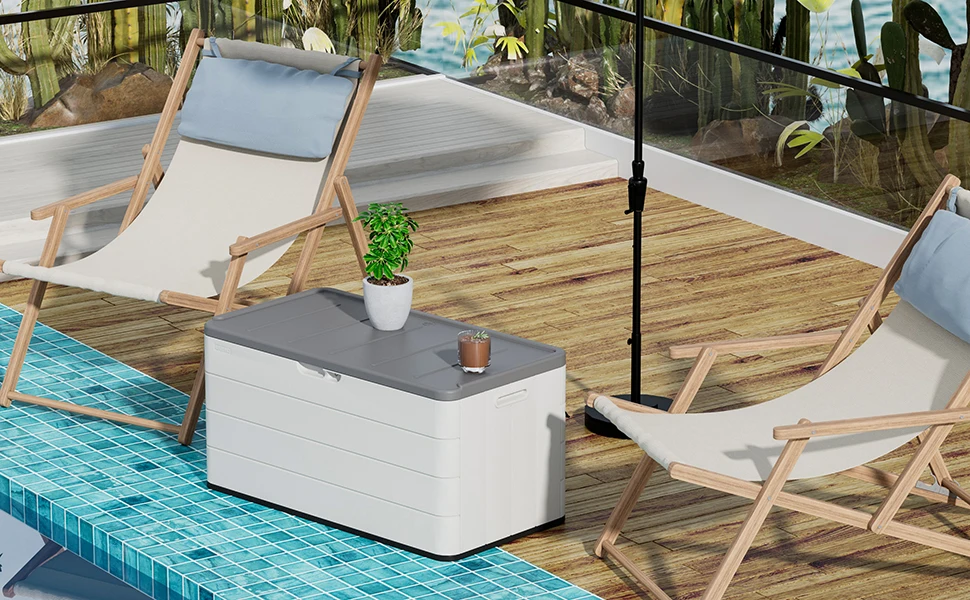 2. ▶【ELEGANT DESIGN】This patio storage box is very elegant with black, white and gray colors and unique shape. Whether place it indoors or outdoors, it goes with everything. In addition, it is also made of environmentally friendly materials, without any smell.