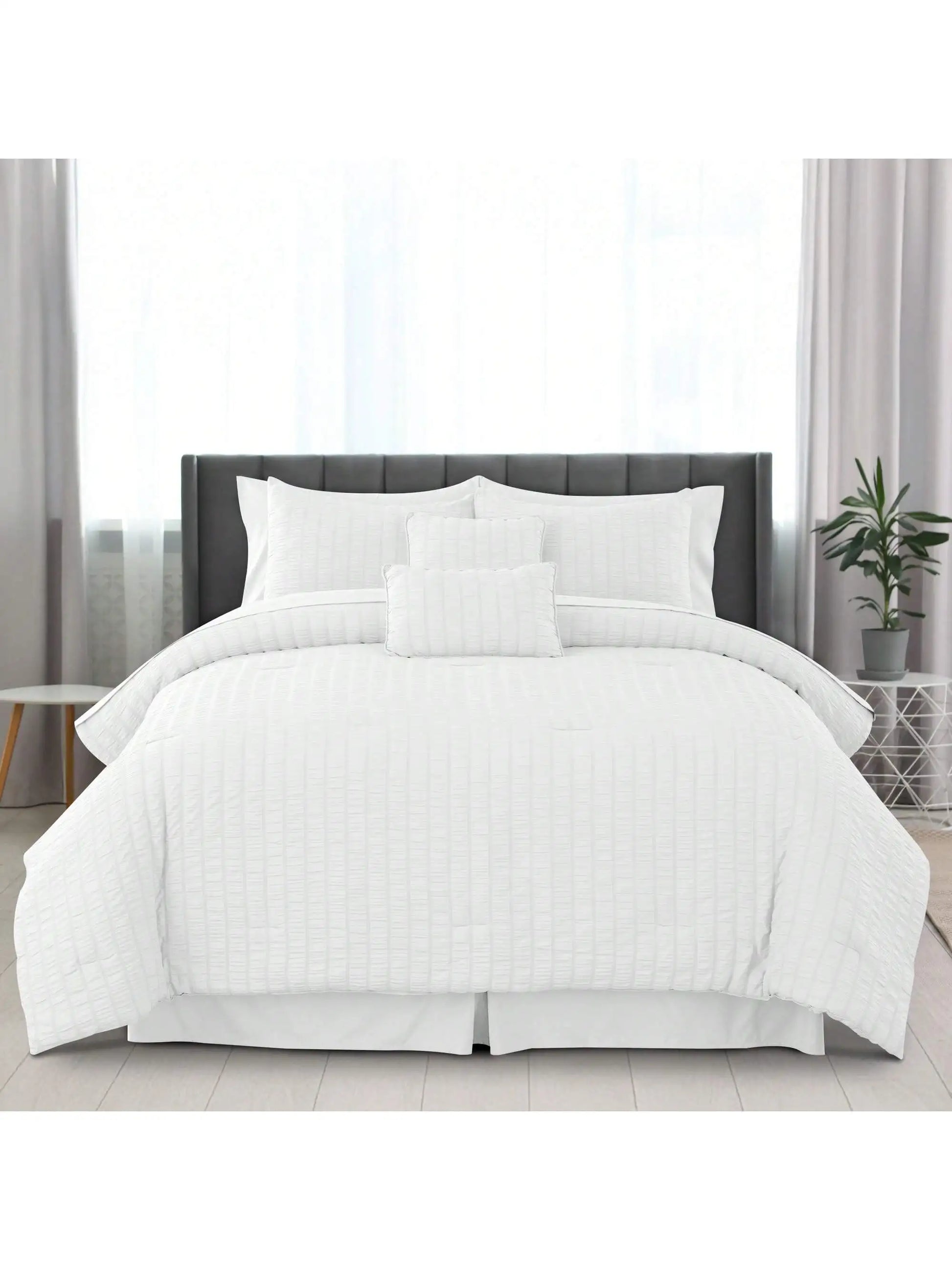 Lux Décor 10-Piece Comforter Set – Seersucker Lightweight Bedding with Sheets, All-in-One Bed-in-a-Bag for Year-Round Comfort