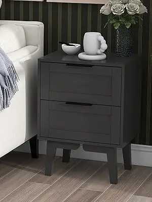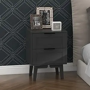 4. Enough Storage Space❥❥❥As a bedside table with two drawers of ample storage space, it is just the right size to store daily or night necessities like your favorite accessories, tissues, pills or more inside the drawers and place your cell phone, alarm clock on the desktop. It makes all you need during the night and morning within your reach. Your living space is sure to be much more neat and tidy instantly and easily with one or more black wood nightstand with 2 drawers.