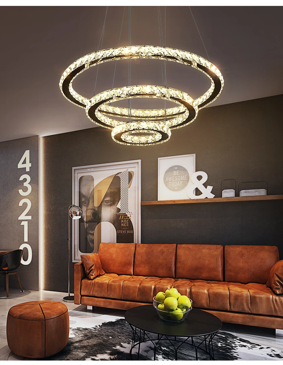 Modern Crystal Ceiling Chandelier Round Ring Lamp Suspension Fixtures Dining Room Furniture Plafon Led Luminaire Pendant Lights