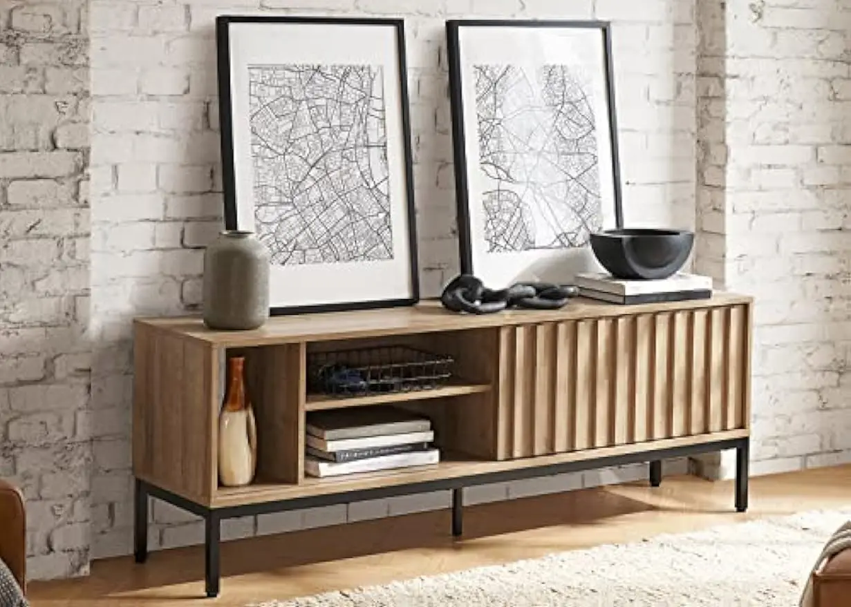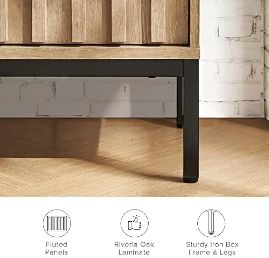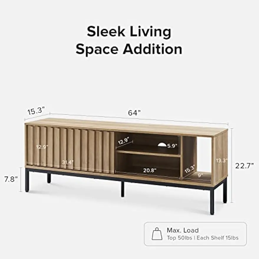 Norwin TV Stand, Rustic Modern Industrial Television Stand for 60/65/70 inch TV, Fluted Entertainment Center with Storage, Wood Media Console Credenza Cabinet Table for Living Room (Oak 64")