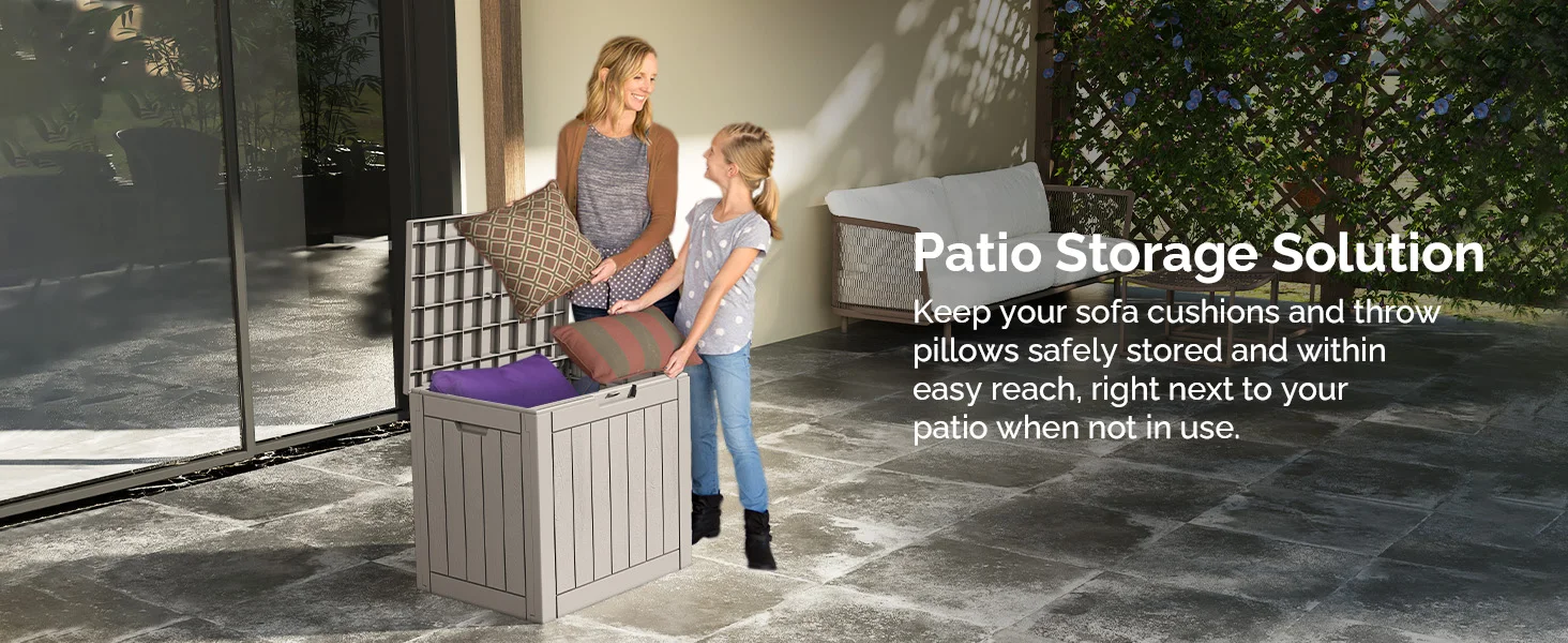 TRANSFORM YOUR SPACE: Whether used indoors as a laundry deck storage box solution or outdoor storage for patio items like cushions, garden tools, and sports gear, this patio outdoor storage box excels. Its multi-functional design makes it suitable as a package delivery box, package box for porch, side table, patio seat, storage bench, or footstool