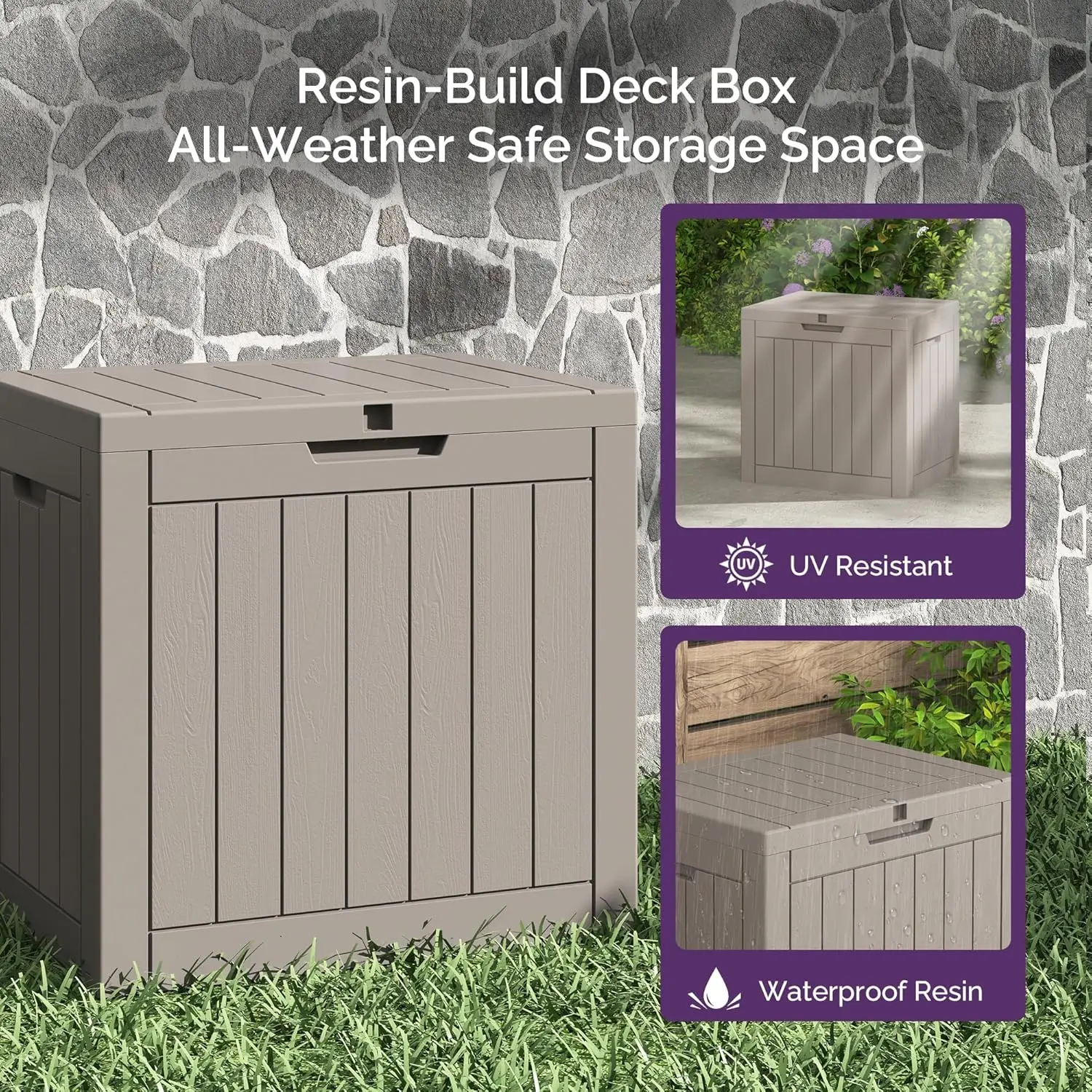 BEAUTY MEETS DURABILITY: Featuring an aggregate resin with a wood grain pattern, this resin deck box offers an appealing look coupled with robust protection. It's resistant to water, UV rays, fading, rust, peeling, and warping, making maintenance nearly unnecessary for the coming years