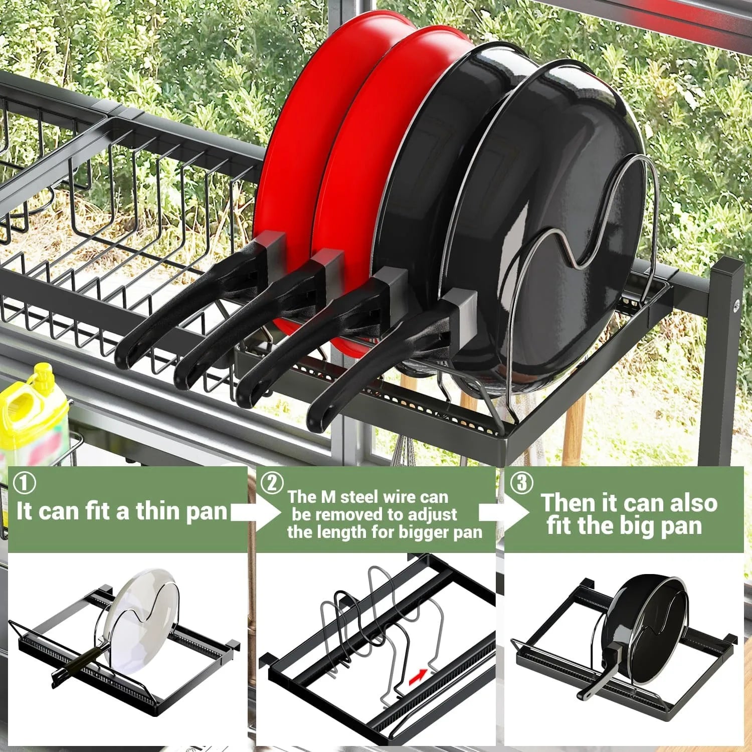 Over The Sink (24"- 32.5" L) Dish Drying Rack (Expandable Dimension) Snap-On Design 2 Tier Kitchen Large Dish Drainer Counter