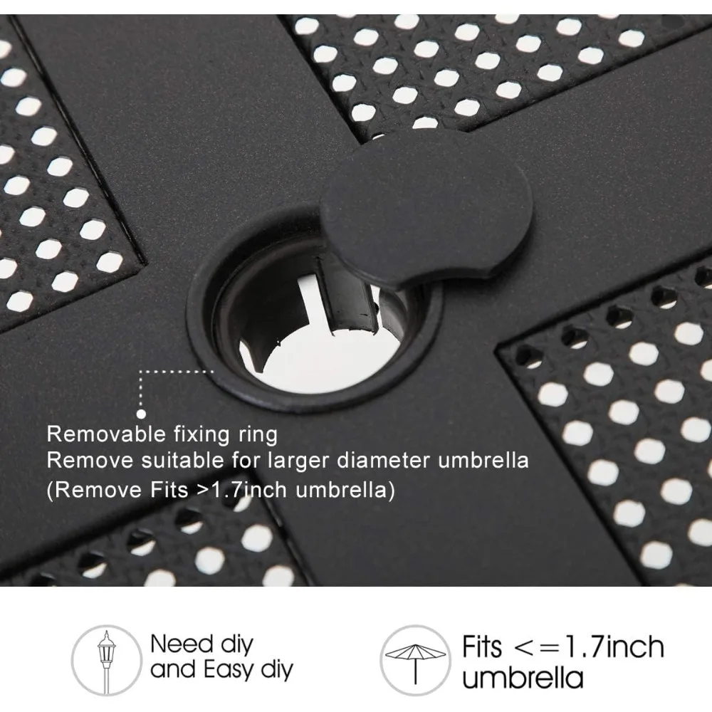 - Square Metal Dining Table: Made of all steel material, processed with ecoating layer, which is rust and weather resistant. Skid resistant feet for uneven ground and against floor scratching. Mesh design table top comes with umbrella hole, more practiacl for outdoor dining. Dimension: 37L x 37W x 28H, with 1.57” umbrella hole.