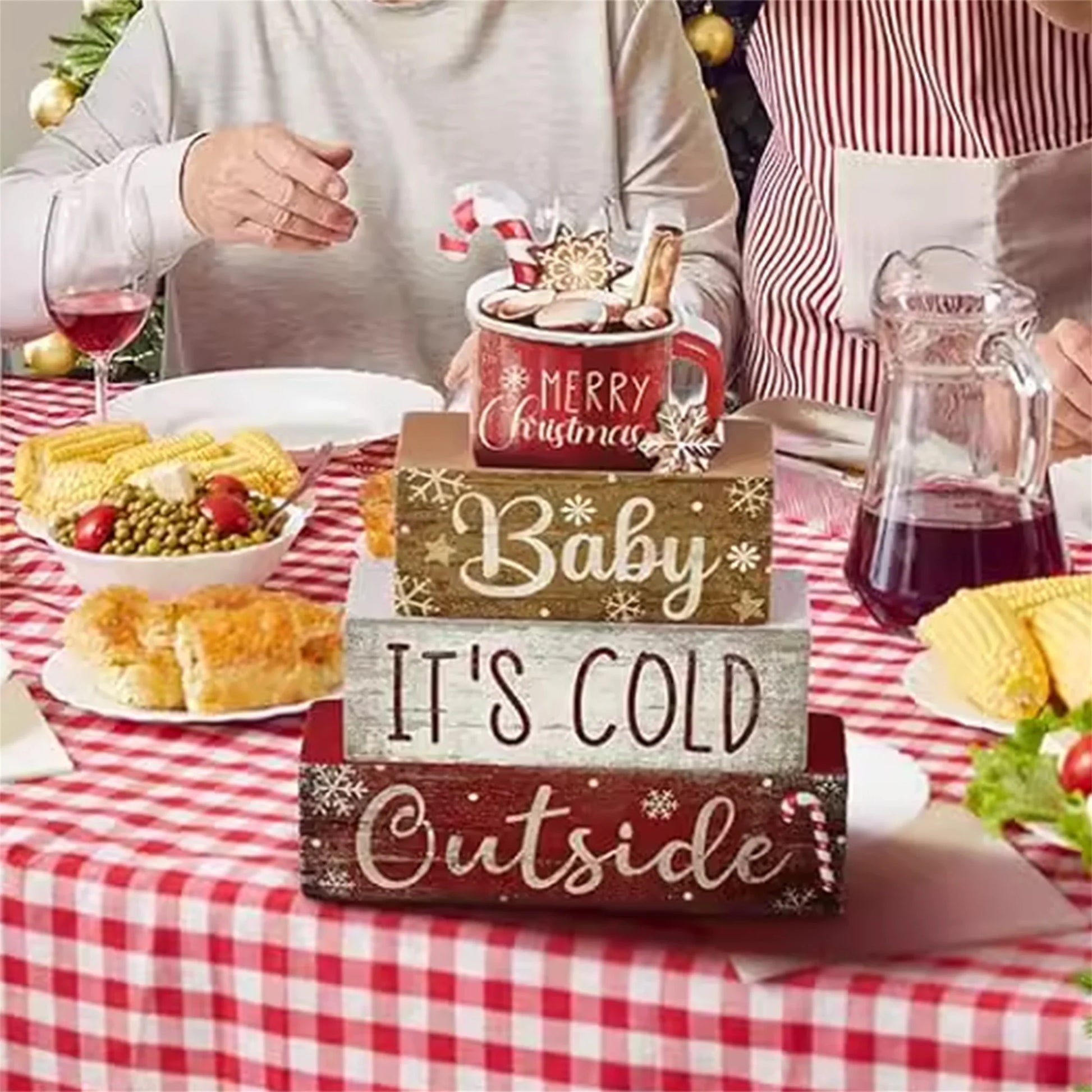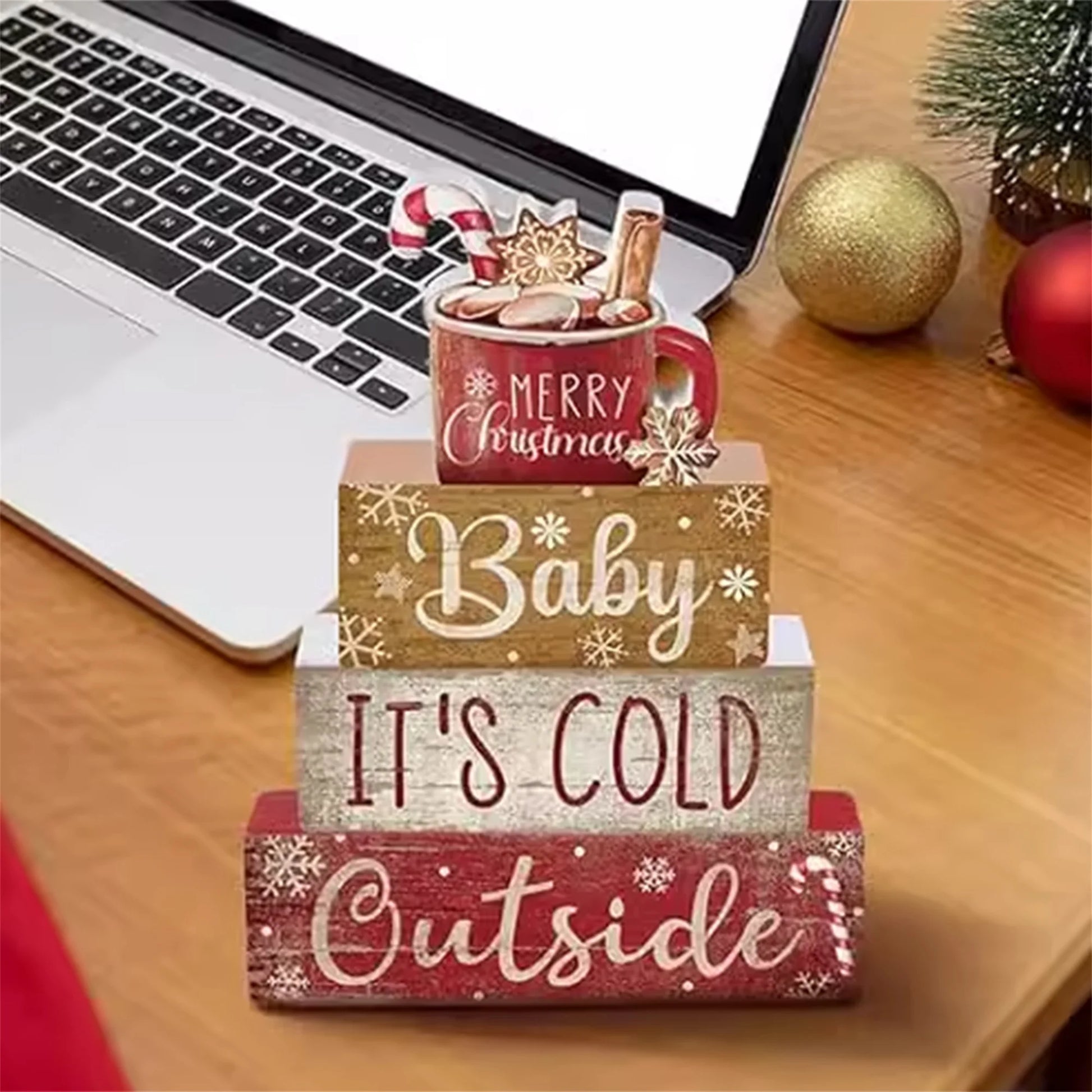 Christmas Tiered Tray Decor Creative Wooden Festive Text Stacked Block Ornaments for Party Home Festival